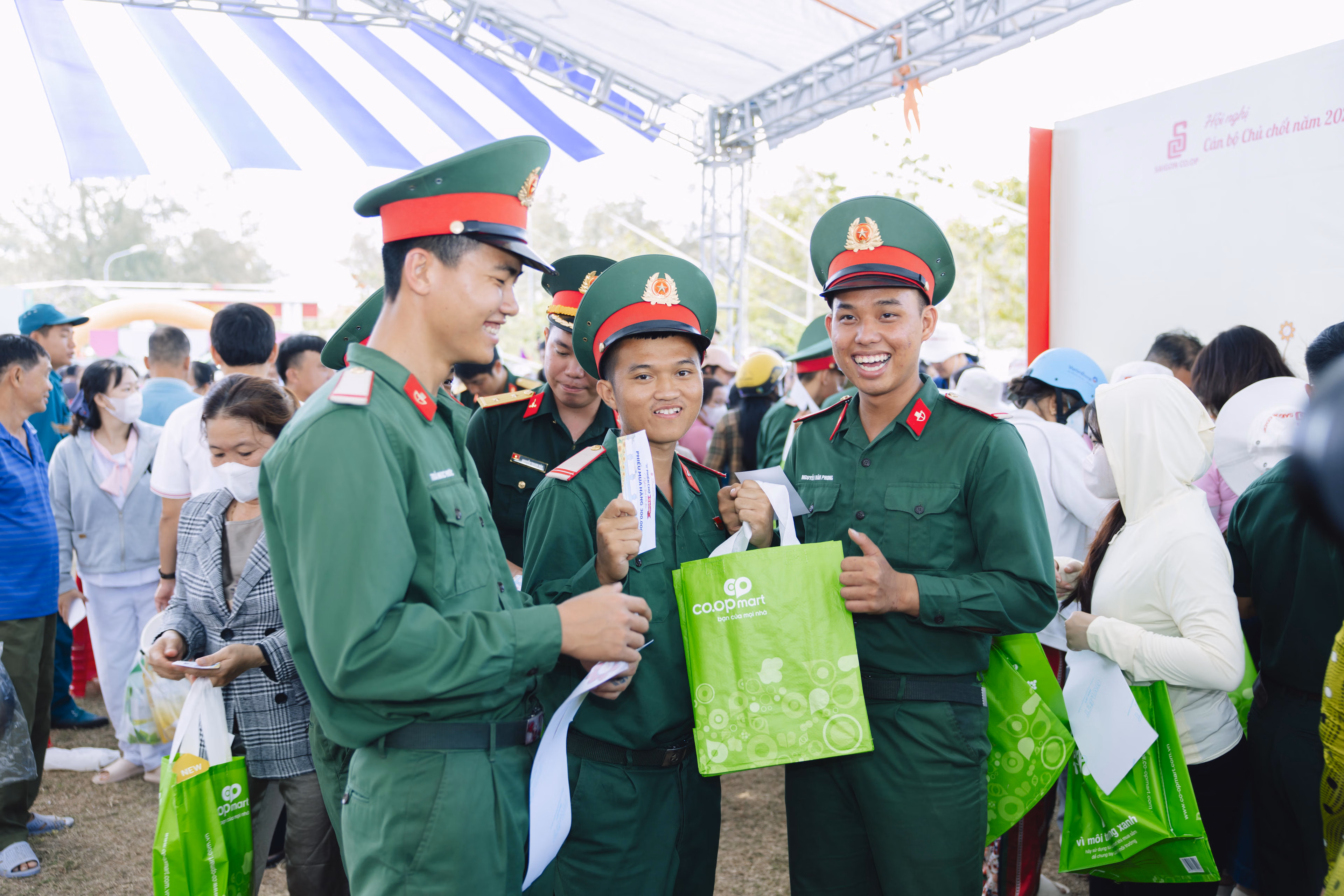 Không gian chương trình tại sân doanh trại Công binh phòng thủ khu vực 06 được bố trí như một siêu thị thu nhỏ, để cán bộ, chiến sĩ, bà con và giáo viên trực tiếp lựa chọn các nhu yếu phẩm phục vụ đời sống hằng ngày. Hàng hóa gồm nhiều sản phẩm quen thuộc trong hệ thống bán lẻ Saigon Co.op như thực phẩm khô, gia vị, hàng tiêu dùng và đồ gia dụng, bảo đảm chất lượng và phù hợp với điều kiện sinh hoạt tại đảo xa.