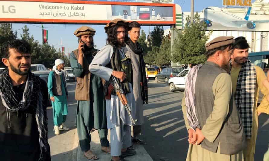 Các chiến binh Taliban đứng bên ngoài Sân bay Quốc tế Hamid Karzai ở Kabul Ảnh: Reuters |