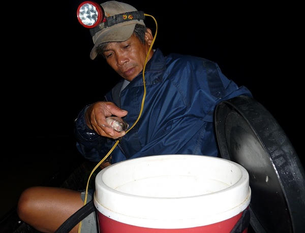 Anh Trần Văn Túc (36 tuổi, một thợ câu ở xã An Tân) cho biết: “Chỉ cần có một khe hở ở đáy là cá thoát ra không còn một con. Vì vậy, một tấm lưới dài khoảng 13 đến 14 sải tay phải mang theo từ 6 đến 8 ký chì, mỗi hạt chì cách nhau một phân. Đánh lưới thì phải đi ban đêm, xách theo đèn pin. Hiện tại, cách đánh bắt bằng lưới được sử dụng phổ biến vì tính hiệu quả của nó hơn các cách đánh bắt khác”.