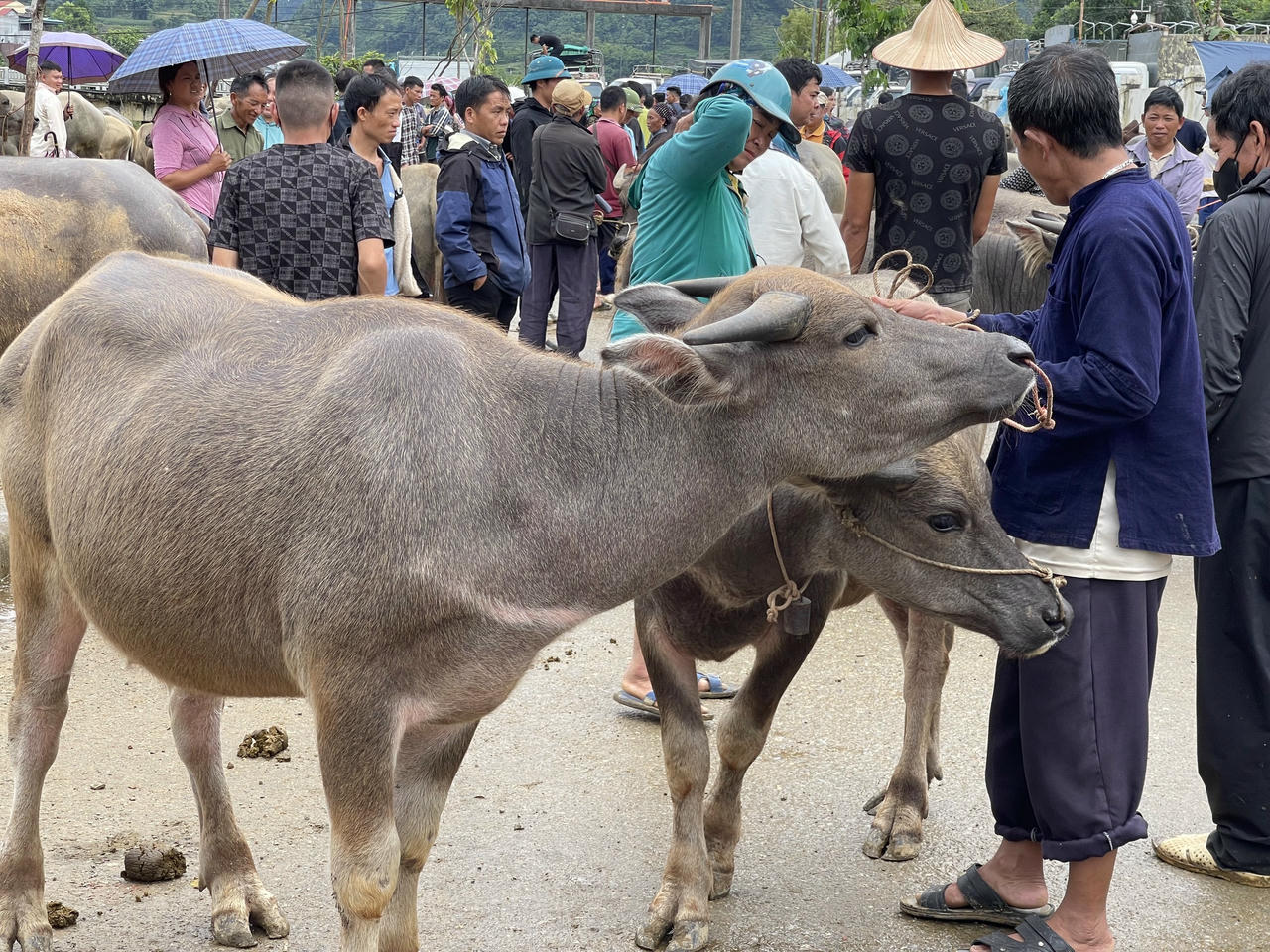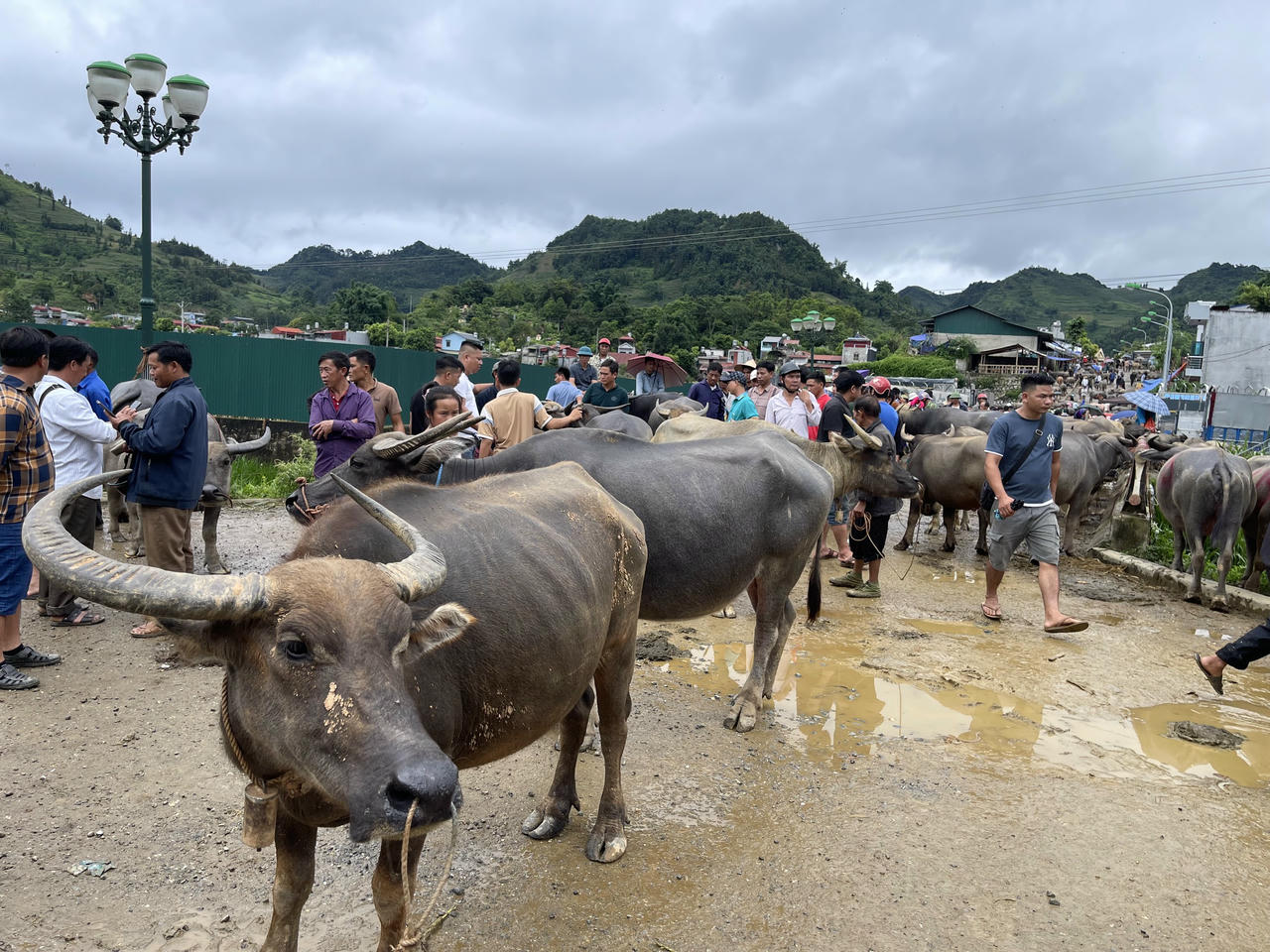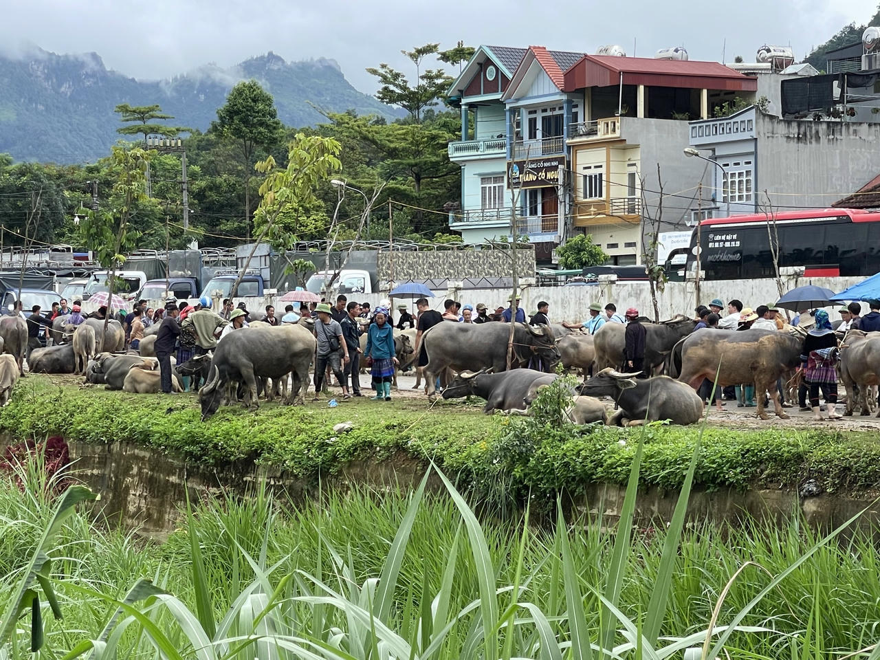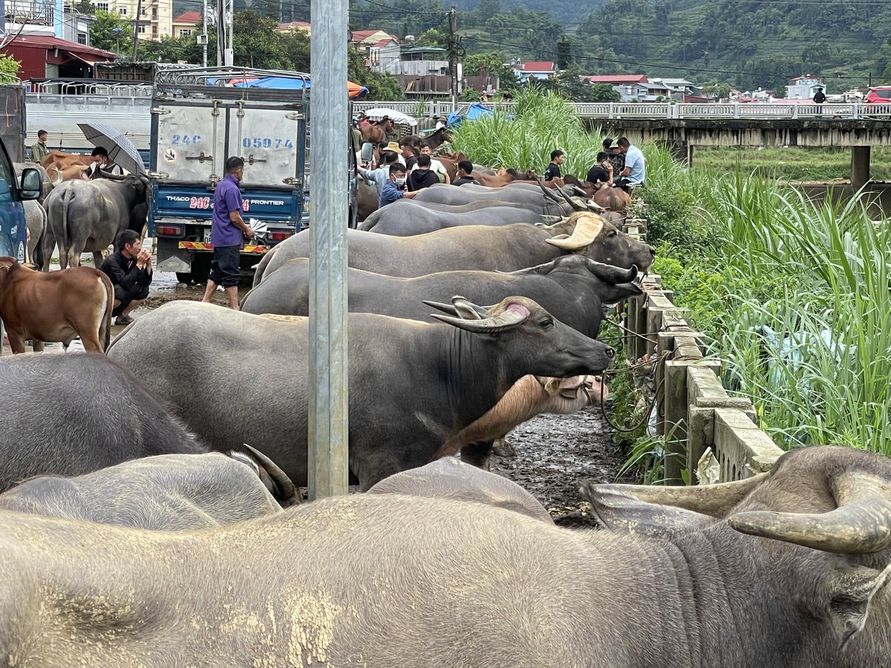 Cứ vào thứ 6 hàng tuần, từ 5h sáng đến 16h chiều, hàng trăm con trâu được người dân đến từ khắp các thôn, bản vùng cao của tỉnh Lào Cai và cả các tỉnh khác mang về đây để bán.