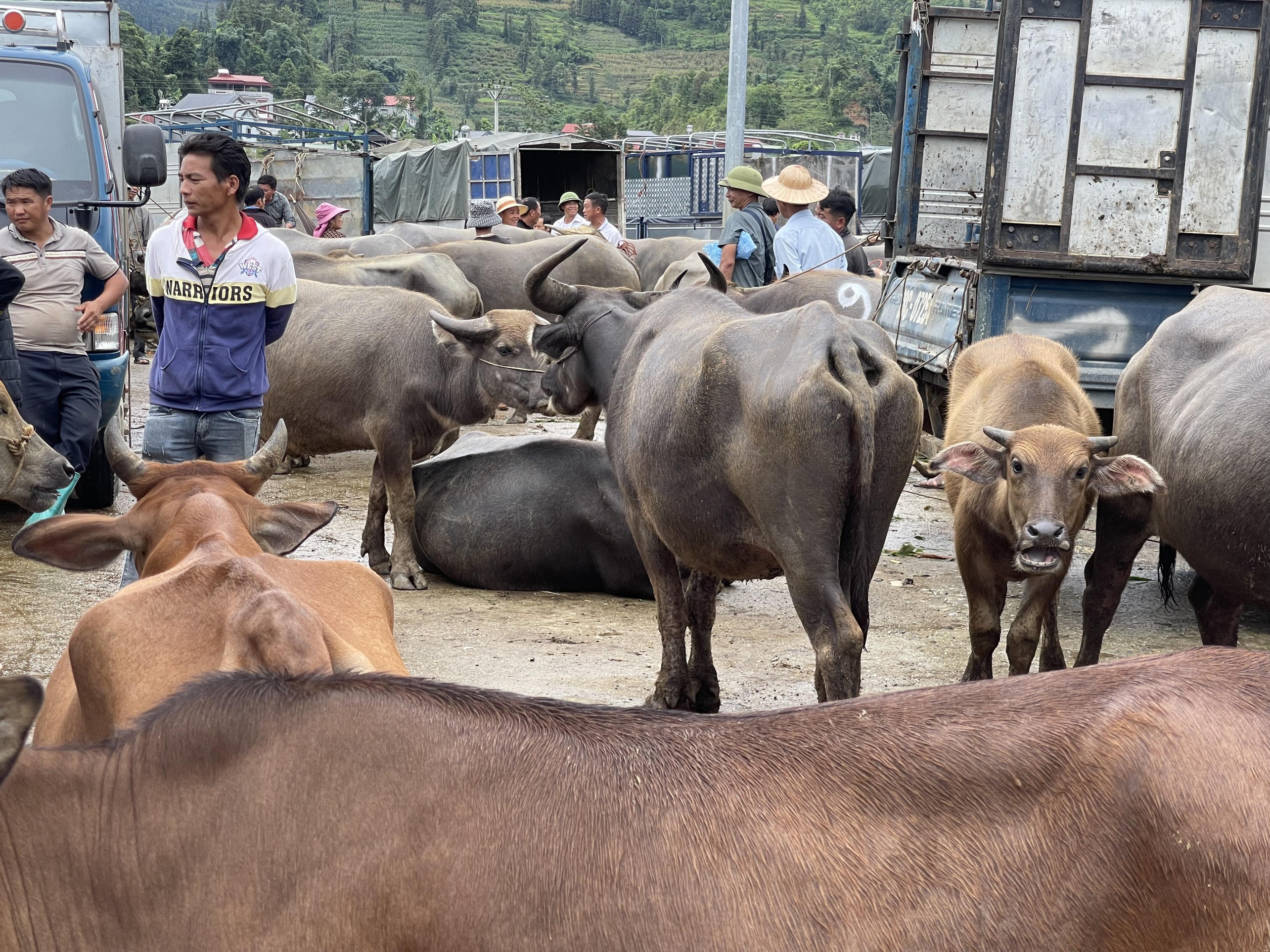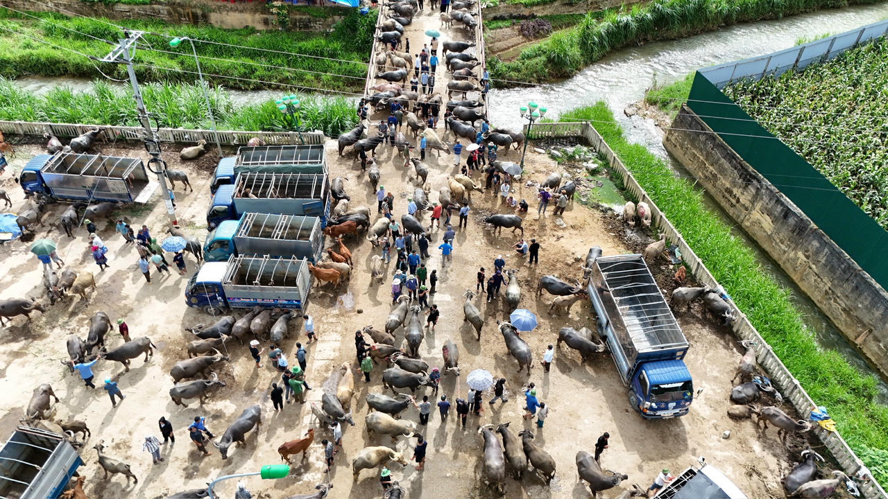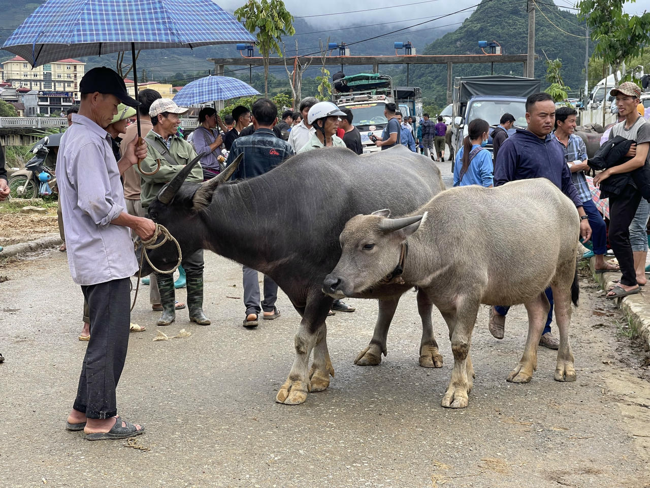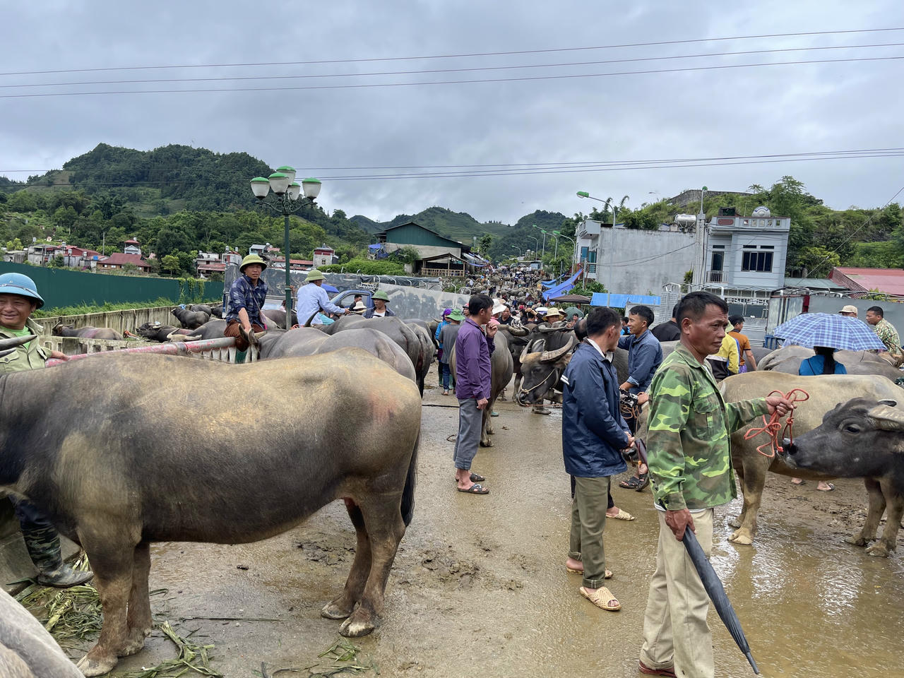Cứ vào thứ 6 hàng tuần, từ 5h sáng đến 16h chiều, hàng trăm con trâu được người dân đến từ khắp các thôn, bản vùng cao của tỉnh Lào Cai và cả các tỉnh khác mang về đây để bán.