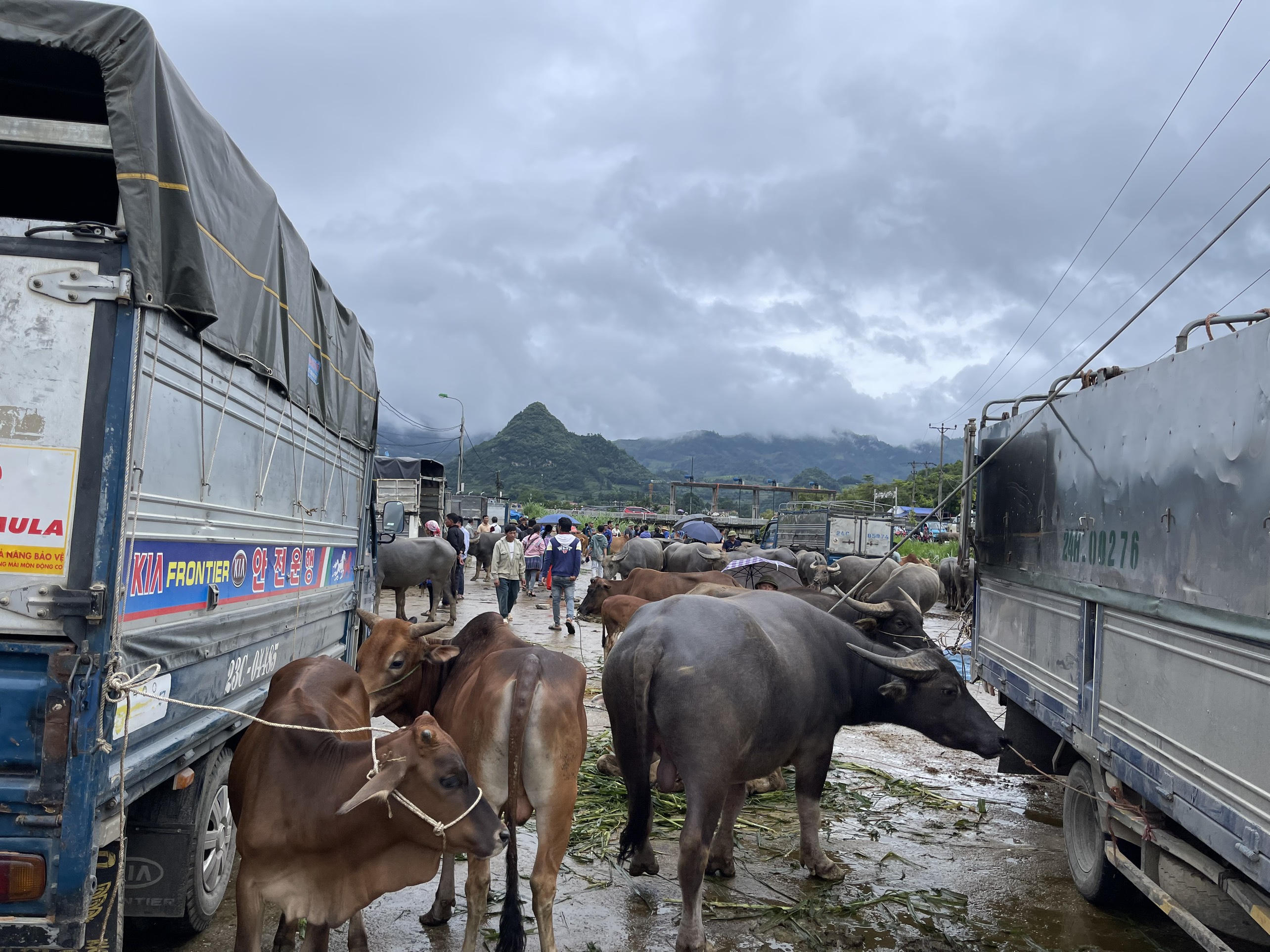 Ngoài mua bán trâu, ở chợ cũng có rất nhiều bò và ngựa được người dân mua bán. |