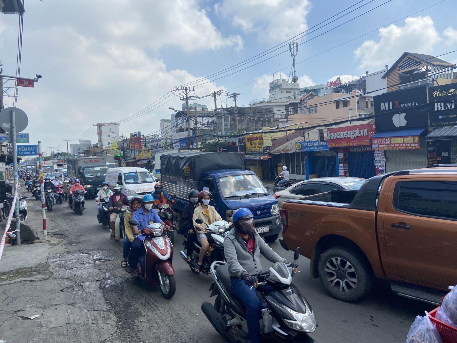 Ghi nhận của phóng viên Báo Tin tức sáng 21/8, trên các tuyến đường Vĩnh Lộc (huyện Bình Chánh), Lê Trọng Tấn, Tân Kỳ, Tân Quý (Tân Phú), Xa lộ Hà Nội, Võ Văn Ngân, Phạm Văn Đồng (thành phố Thủ Đức), Nguyễn Thái Sơn, Lê Quang Định, Phan Văn Trị (quận Gò Vấp)… lượng người và phương tiện đi lại khá đông đúc, thậm chí nhiều nơi còn ùn tắc kéo dài.