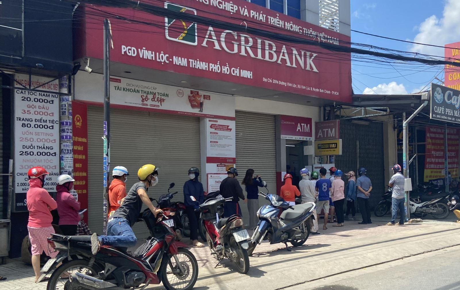 Nhiều cây ATM cũng đông khách đứng chờ rút tiền trong sáng 21/8.