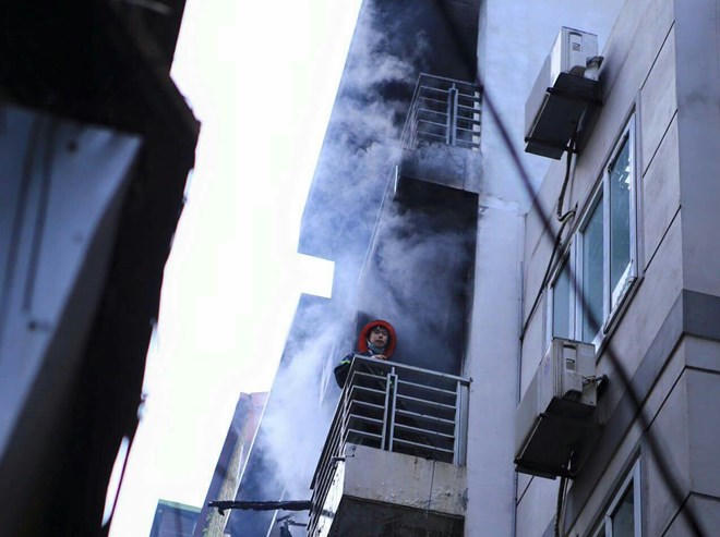Theo VietNam+, rạng sáng cùng ngày, lửa bốc lên tại một căn nhà 5 tầng, số 51, ngõ 55 phố Huỳnh Thúc Kháng, quận Ba Đình, Hà Nội.