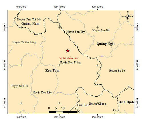 Trung tâm báo tin động đất và cảnh báo sóng thần - Viện Vật lý Địa cầu vừa phát đi thông tin về trận động đất diễn ra tại khu vực huyện Kon Plông, tỉnh Kon Tum.