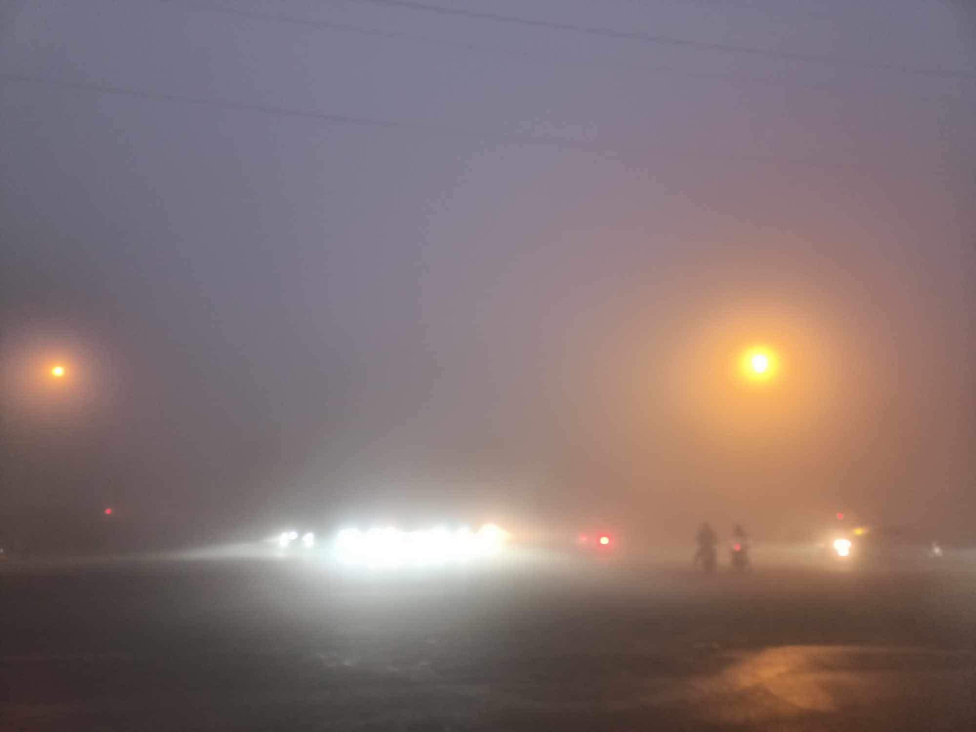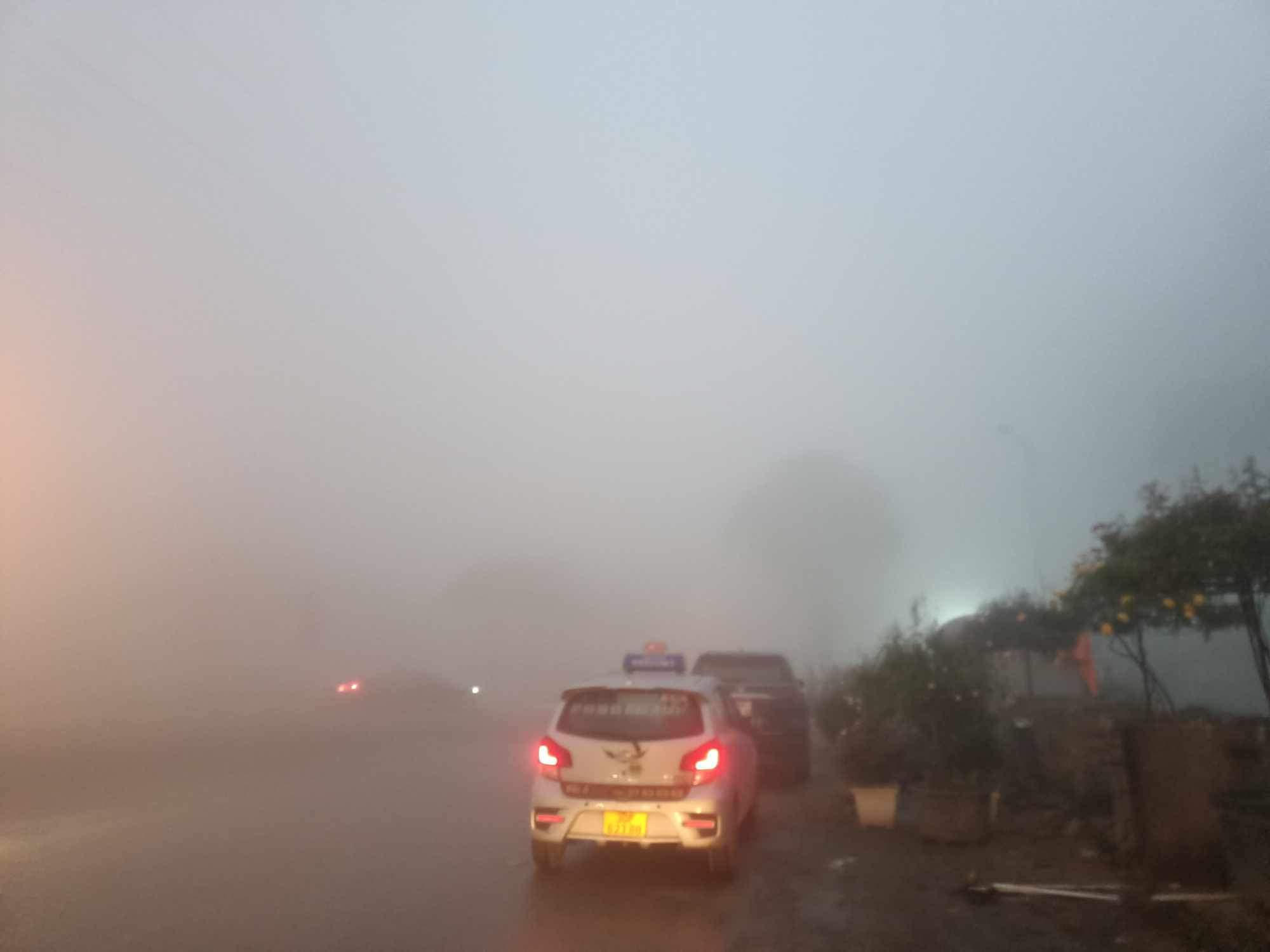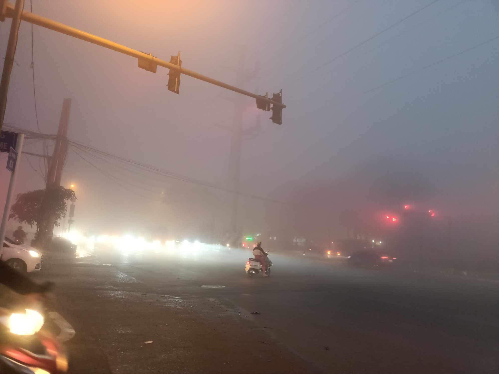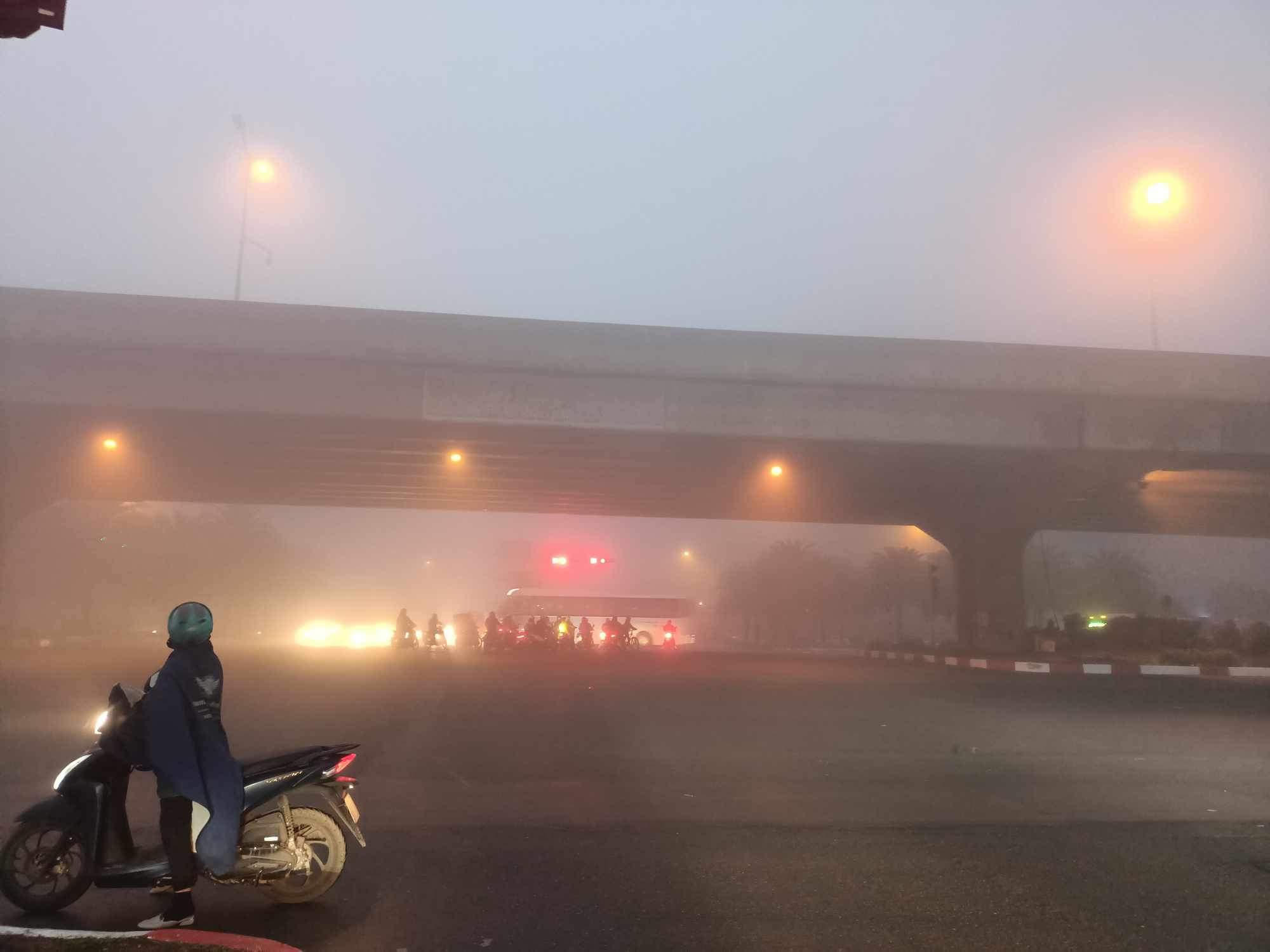 Màn sương mù dày đặc trên đường Phạm Hùng.