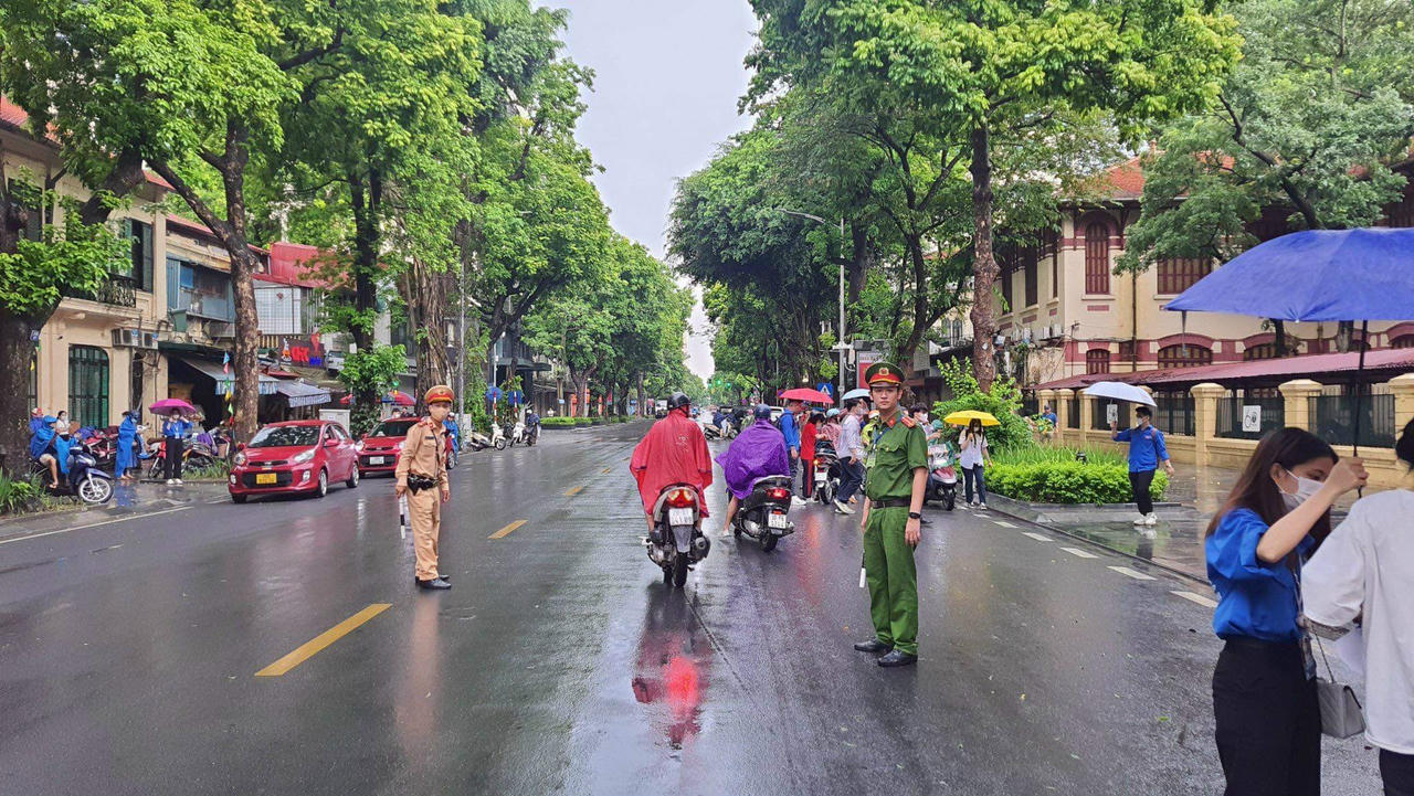 Theo Đại tá Trần Đình Nghĩa, Trưởng phòng Cảnh sát giao thông, Công an TP Hà Nội, mưa rào vào sáng sớm không gây ngập lụt nên đơn vị không phải tính đến phương án phân luồng hướng dẫn giao thông trong mưa. Mặc dù vậy 100% quân số cảnh sát giao thông đã có mặt ứng trực trên toàn tuyến, phối hợp cùng công an các phường, xã, thị trấn bảo đảm an toàn giao thông tại các điểm thi.