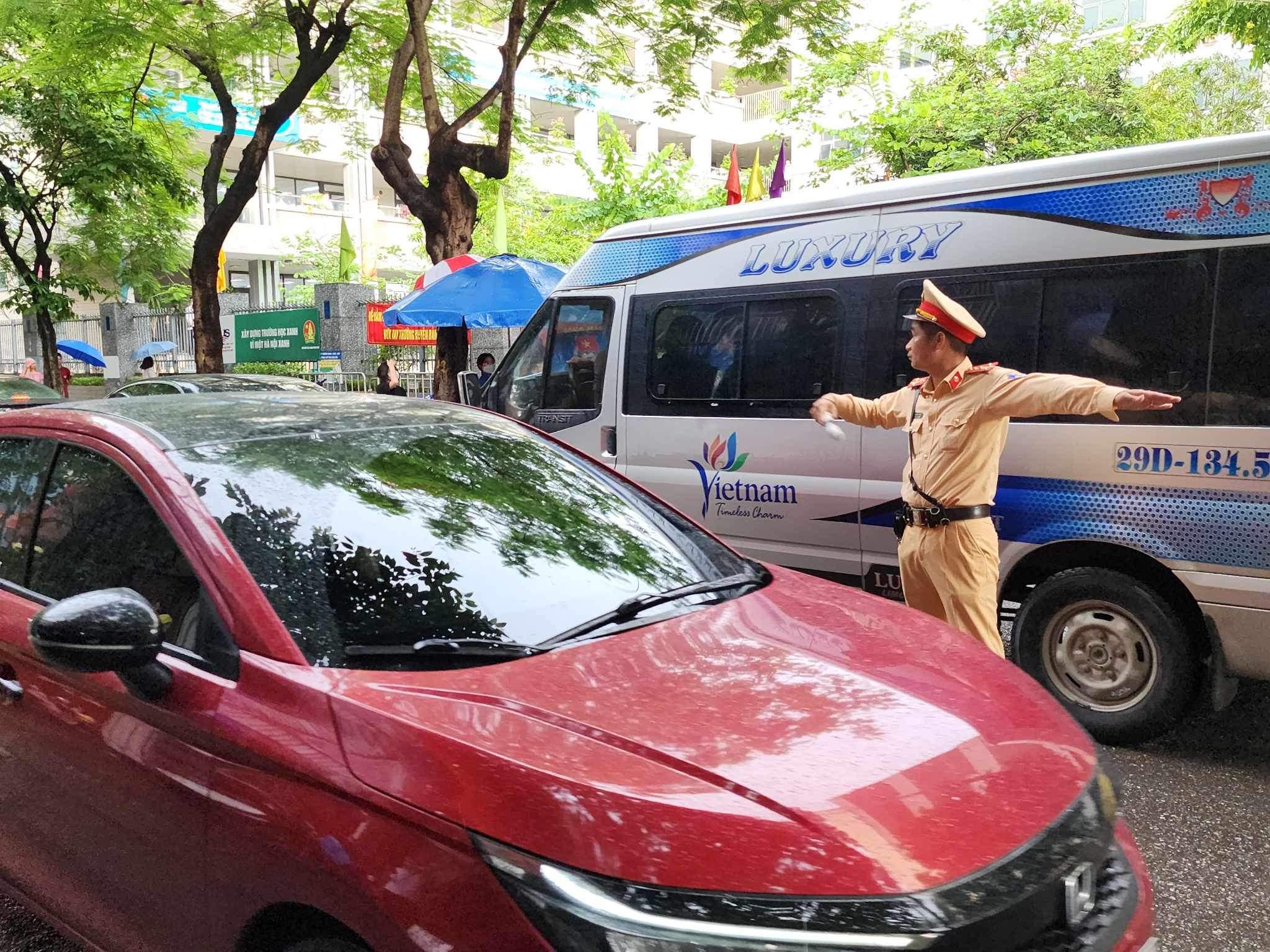 Tại địa bàn quận Cầu Giấy nơi tập trung nhiều điểm thi vì có gần 20 điểm trường Đại học và Cao đẳng, Đội Cảnh sát giao thông số 6, Phòng Cảnh sát giao thông đã chủ động phối hợp phân luồng từ xa, cắt cử cán bộ, chiến sĩ ứng trực tại các điểm thi không để cùng một lúc, cùng thời điểm các phương tiện dừng đỗ gia tăng áp lực giao thông.