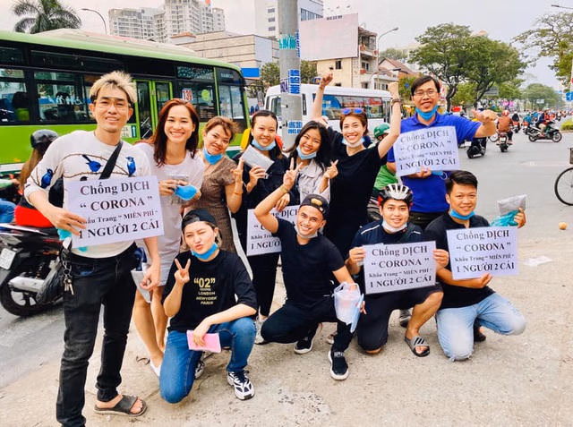 và những người bạn đi phát khẩu trang miễn phí tặng người nghèo.