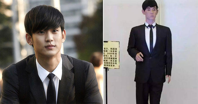 | Lee Jun Ki không biết nên khóc hay nên cười với bức tượng sáp "thảm họa" có tỷ lệ đúng bằng cơ thể anh vừa được giới thiệu tại Trung Quốc. Ảnh: ST |