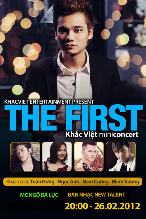 Năm 2011 vừa qua được đánh giá là một năm thành công đối với Khắc Việt trên con đường âm nhạc của mình, đặc biệt trong vai trò ca sĩ. Giữ đúng lời hứa với người hâm mộ, vào ngày 26/02 tới đây, Khắc Việt sẽ tổ chức một đêm nhạc tri ân khán giả mang tên “The First” vào lúc 20h tại Life Club (194 Trần Quang Khải – Hà Nội).