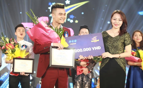 | Bà Hương Trần Kiều Dung, TGĐ Tập đoàn FLC trao phần thưởng cho thí sinh Nguyễn Đức Tiến – người được bình chọn nhiều nhất qua tin nhắn |