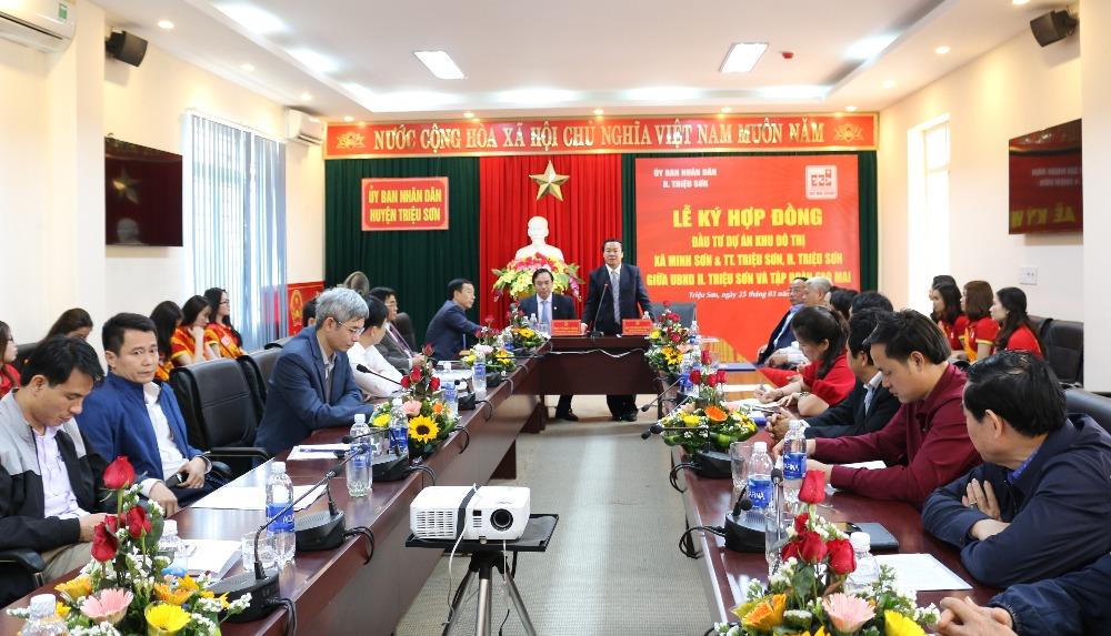 Có tổng vốn đầu tư ban đầu gần 500 tỷ đồng, với diện tích 45 ha, Tập đoàn Sao Mai và UBND huyện Triệu Sơn vừa ký kết hợp đồng đầu tư khu đô thị Minh Sơn – thị trấn Triệu Sơn tại huyện Triệu Sơn, tỉnh Thanh Hóa.