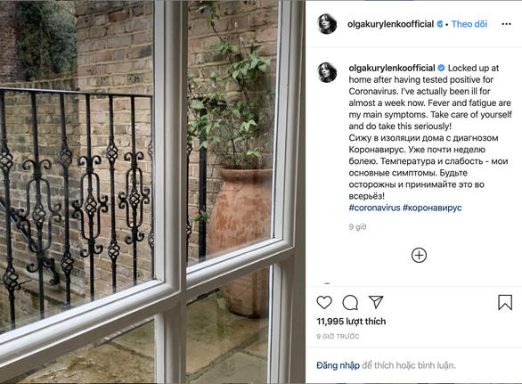 "Tôi đã được chẩn đoán mắc virus corona và đang cách ly ở nhà. Trước đó, tôi đã ốm một tuần với các triệu chứng như sốt và mệt mỏi", nữ diễn viên kiêm người mẫu gốc Ukraine chia sẻ thông tin trên Instagram cá nhân.