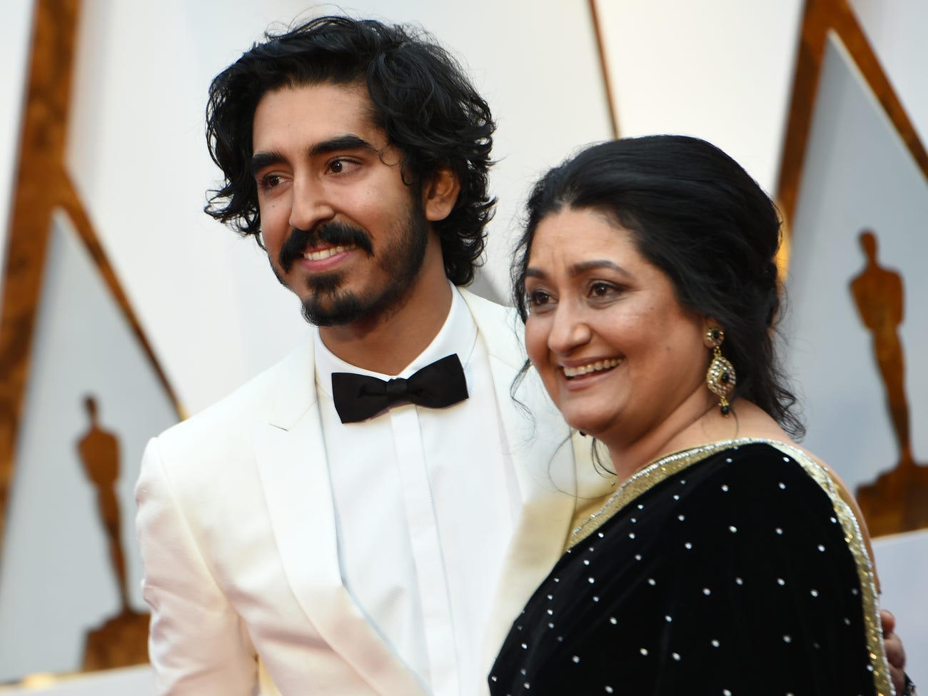 Diễn viên chính trong phim "Triệu phú ổ chuột" Dev Patel với mẹ Anita tại Oscar 2017.