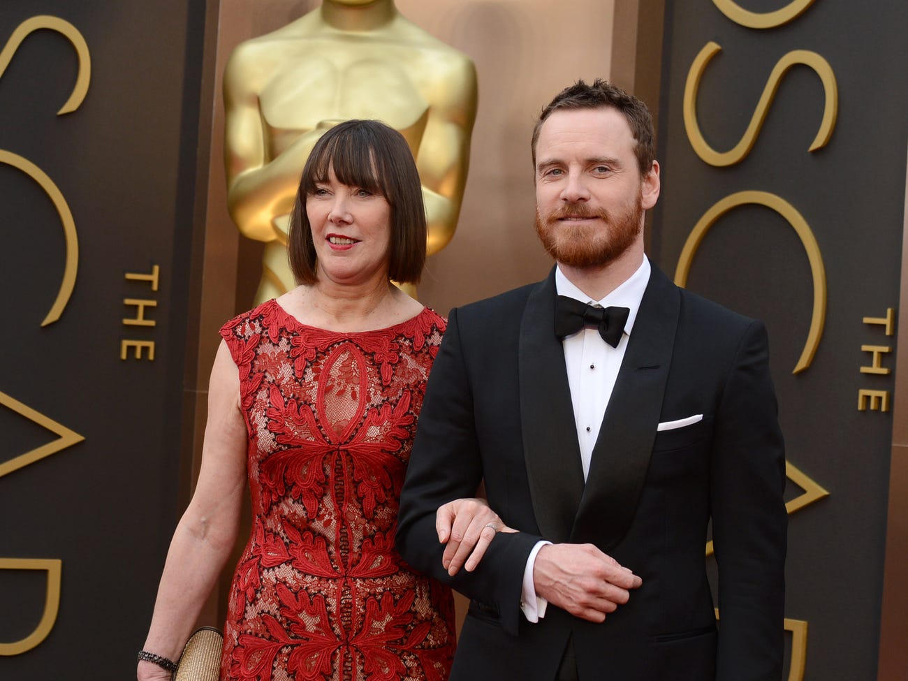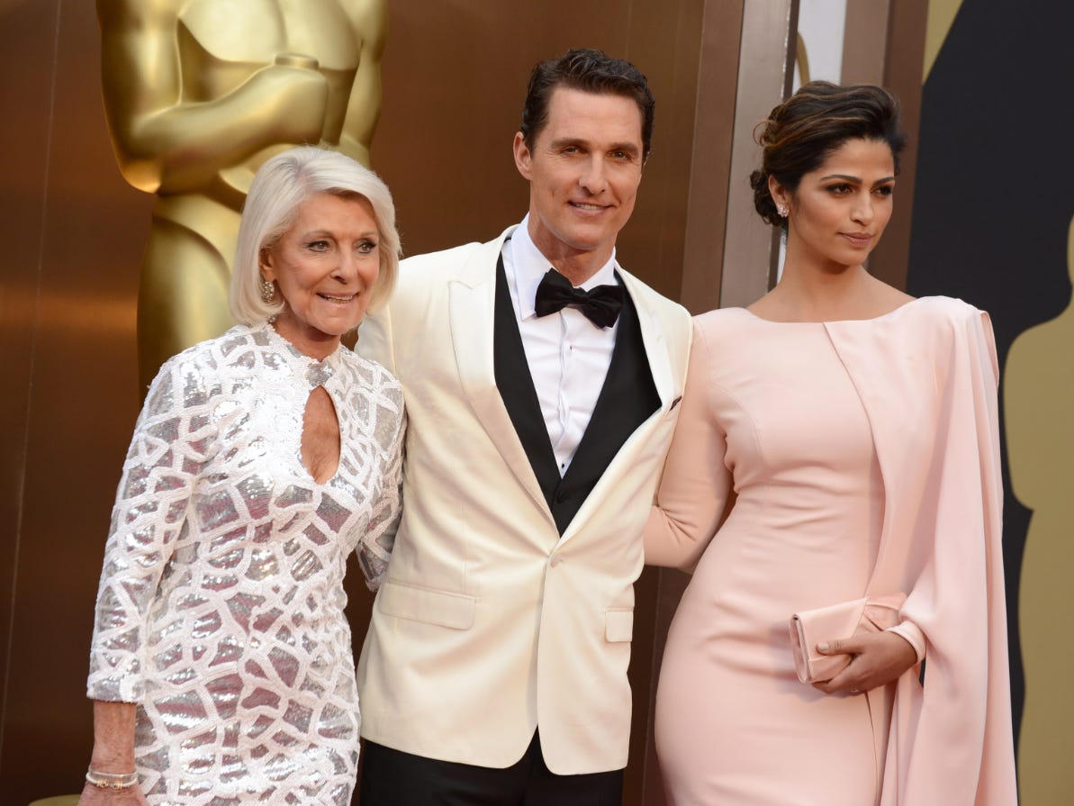 Matthew McConaughey tạo dáng chụp ảnh tại Oscar 2014 cùng mẹ Mary Kathlene McCabe và vợ Camila Alves.