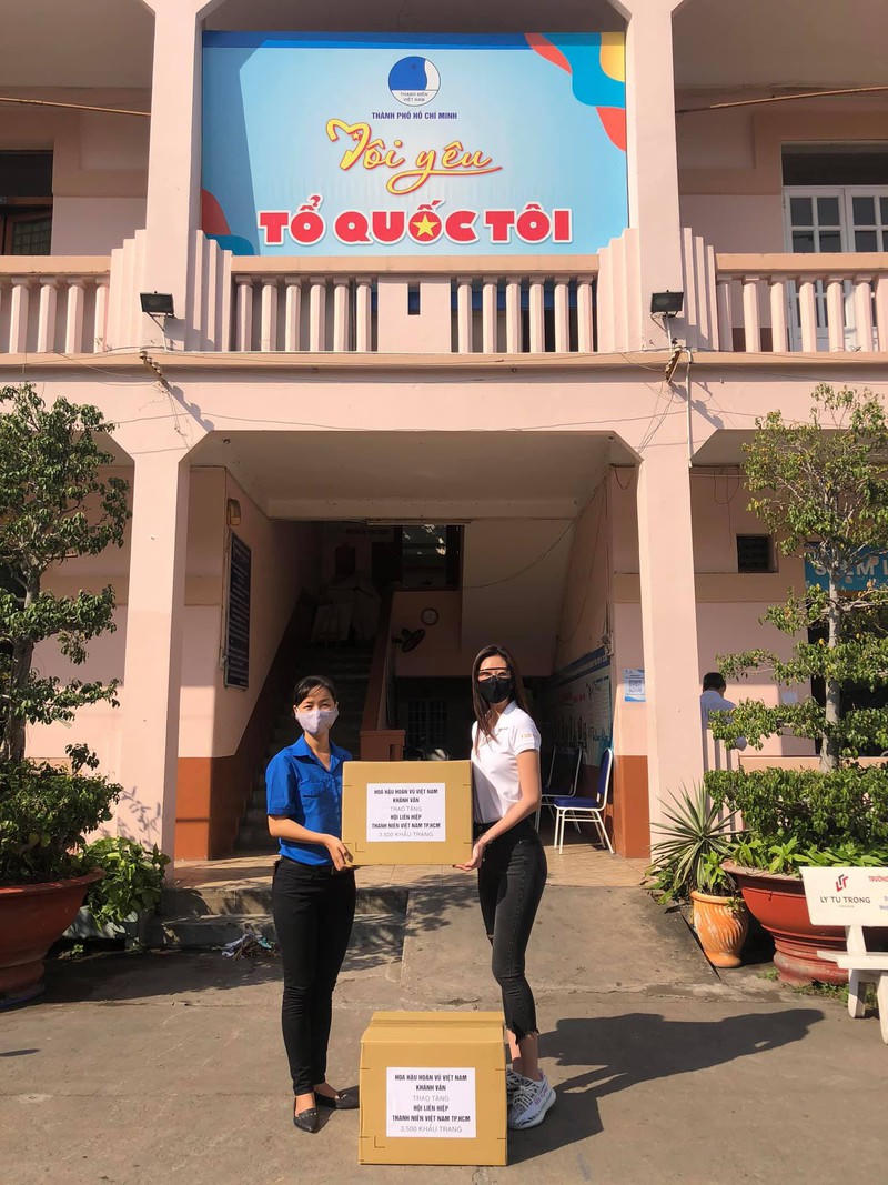 Hoa hậu Khánh Vân trao tặng 3.500 khẩu trang cho các chiến sĩ, tình nguyện viên đang chiến đấu với Covid-19 tại các khu cách ly. "Cố lên nhé mọi người . Các chiến sĩ, y bác sĩ, tình nguyện viên... Chúng ta sẽ cùng nhau vượt qua đại dịch covid-19, Vân cảm ơn và ngưỡng mộ mọi người rất nhiều".