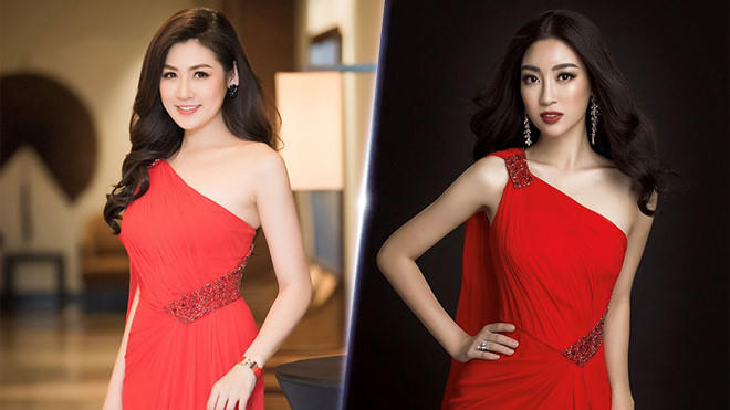 Tú Anh và Đỗ Mỹ Linh đụng hàng mẫu váy đỏ lệch vai gợi cảm. Cả hai người đẹp đều quyến rũ với mái tóc uốn xoăn nữ tính, cùng lối trang điểm nhấn đậm phần mắt.