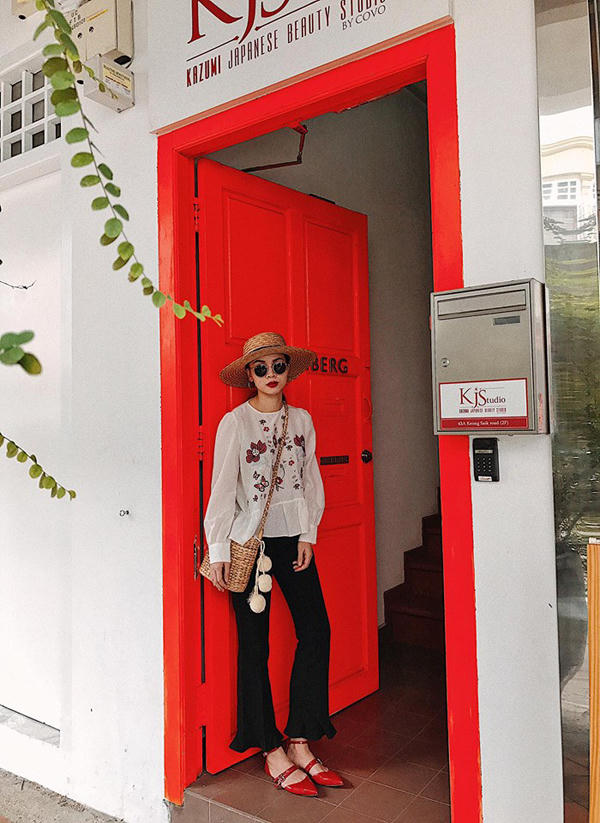Yến Trang xuống phố 'chất lừ' với sẻ đồ gồm nhiều xu hướng thời thượng như phụ kiện trên chất liệu thiên nhiên, áo thêu, quần loe.