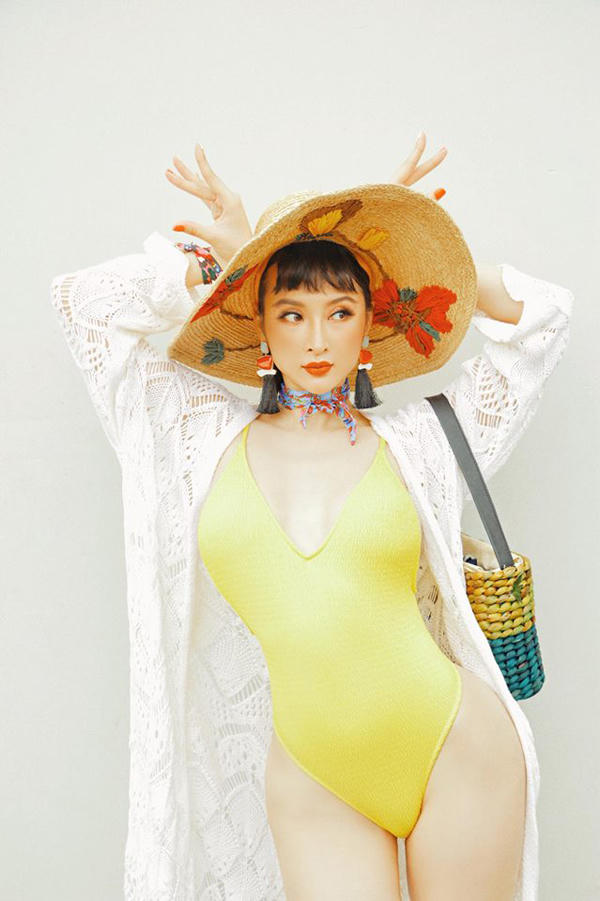 Chính về thế 'đến hẹn lại lên', mỗi khi hè về chúng lại là phụ kiện được 'săn lùng' nhiều nhất. Angela Phương Trinh điệu đà với mũ nan trang trí hoa thêu.