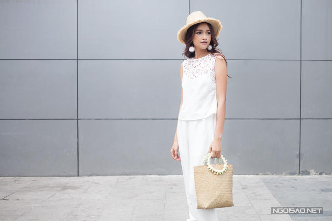 Kết hợp mũ rộng vành được đan thủ công cùng váy trắng tinh khôi là công thức được nhiều người đẹp áp dụng, Yến Nhi cũng nằm trong số đó.