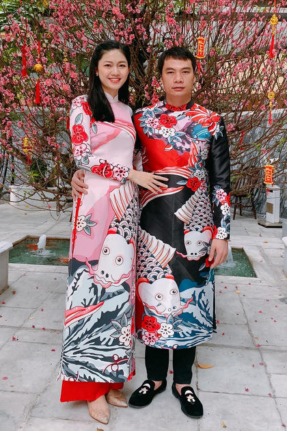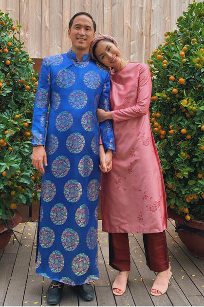 Tăng Thanh Hà và chồng luôn diện áo dài mỗi dịp đầu năm. |
