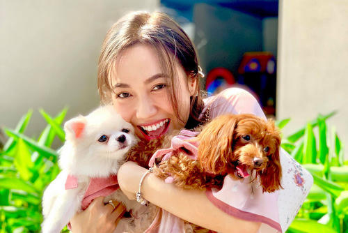 Diễn viên Diệu Nhi vui đùa bên những con thú cưng. Người đẹp cho biết cô có lịch diễn kịch xuyên Tếtphục vụ khán giả, vì vậy sẽ đi chơi cùng gia đình sau. |