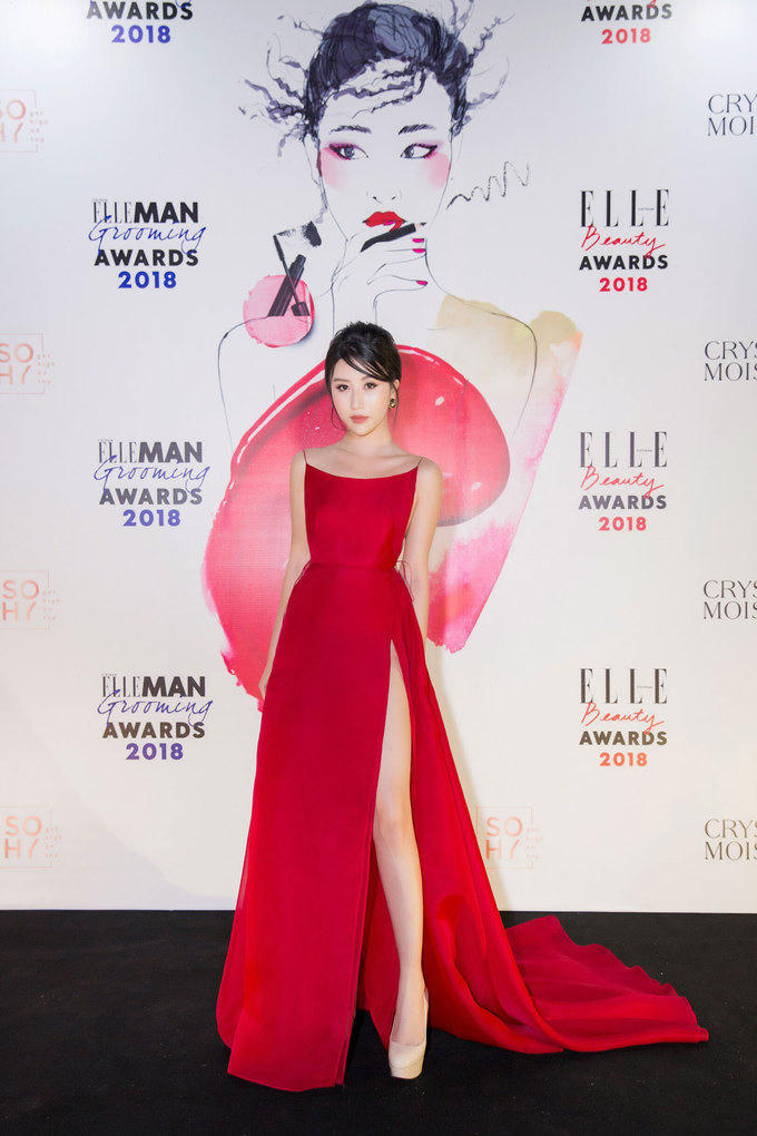 Thời gian gần đây hot girl Quỳnh Anh Shyn ngày càng tạo được ấn tượng tốt với phong cách sành điệu, quyến rũ. Đầm hai dây, xẻ tà cao của NTK Trần Hùng giúp cô nàng ghi điểm tại sự kiện ELLE Beauty Awards 2018.
