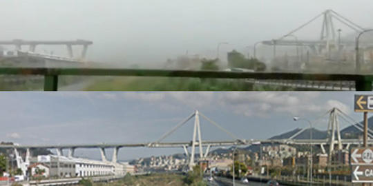 Người lao động đăng tải theo Reuters, cầu bị sập xuống sông, vào đường ray và các toà nhà lân cận trong lúc mưa lớn do ảnh hưởng bão. 20 chiếc xe có liên quan đến vụ tai nạn. Theo hãng tin ANSA, một người được kéo ra khỏi đống đổ nát bên dưới cây cầu và được đưa đến bệnh viện bằng trực thăng.