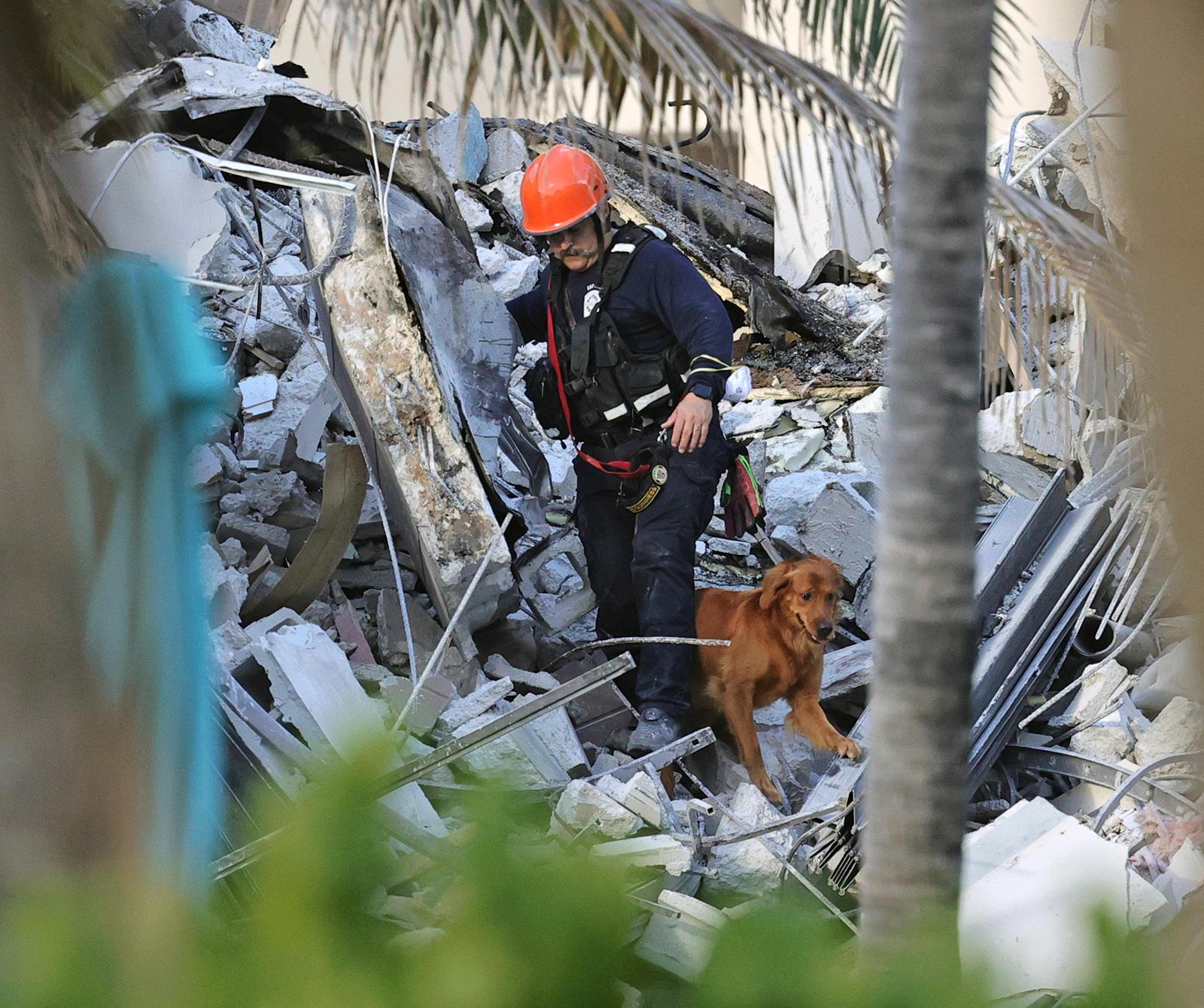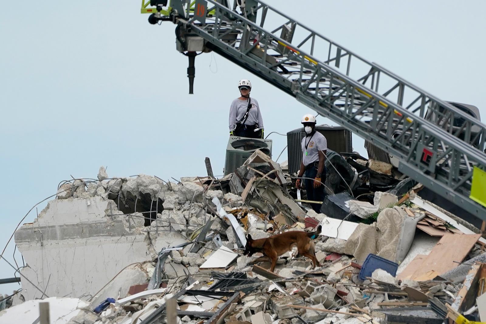 Lực lượng cứu hộ đã làm việc suốt đêm 24, rạng sáng 25-6 với sự giúp đỡ của chó cứu hộ và các thiết bị dò tìm như camera hồng ngoại để tìm kiếm người sống sót. Một đội khác đào hầm từ một bãi đậu xe ngầm bên dưới tòa nhà với hy vọng tiếp cận các nạn nhân.