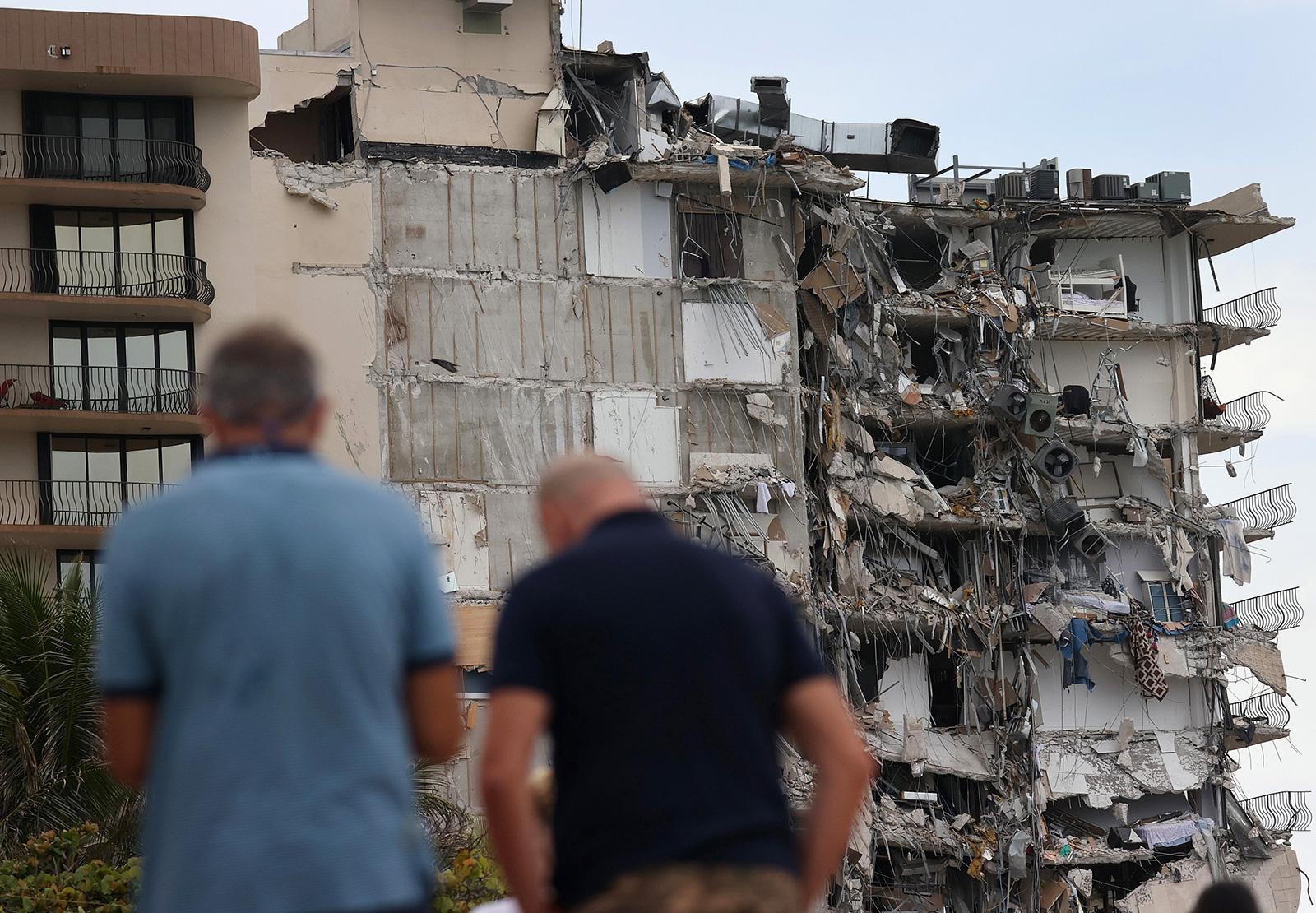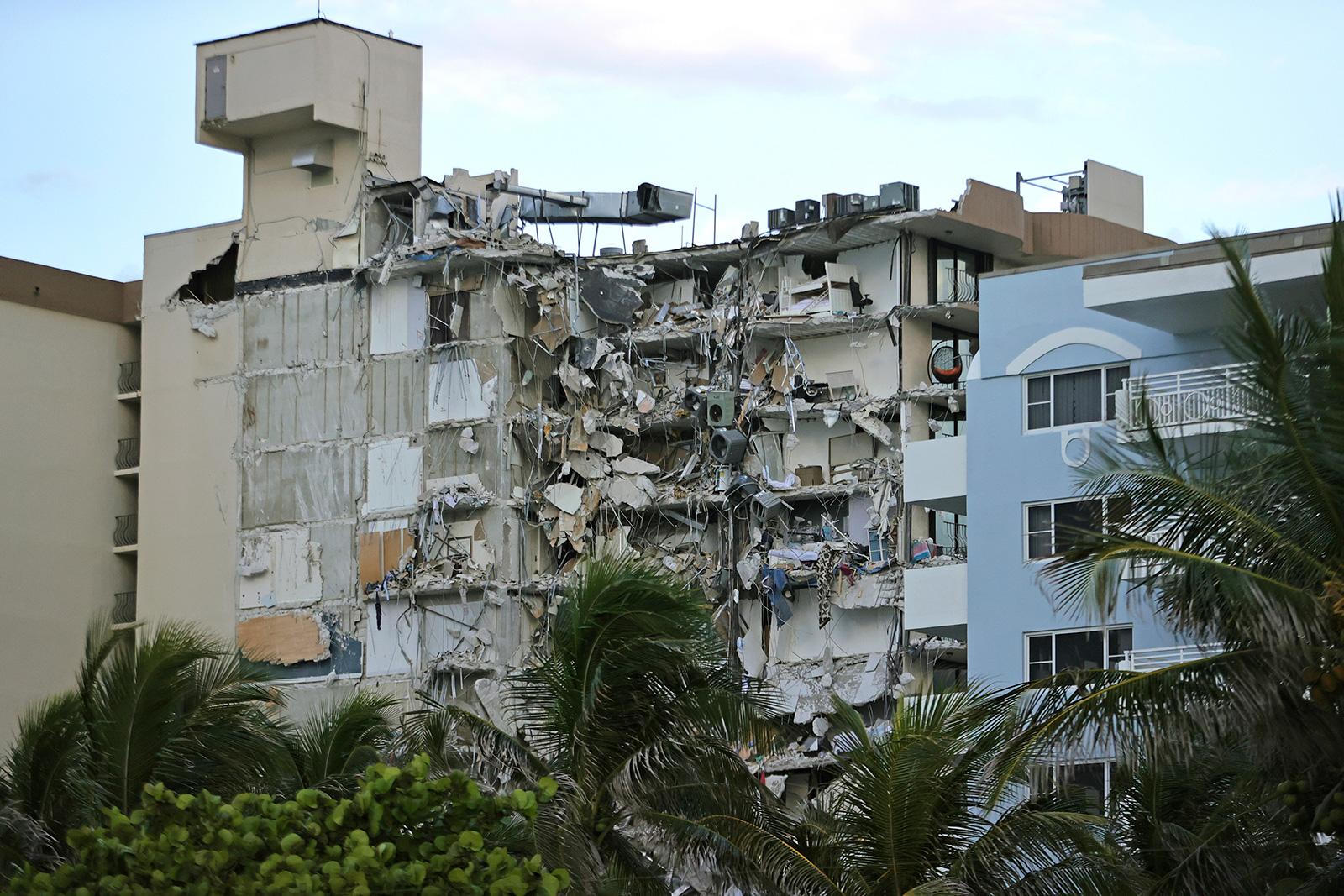 Một phần của tòa nhà chung cư 12 tầng Champlain Towers South bị sập. |