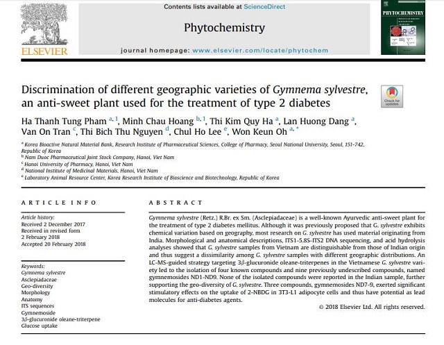 Kết quả bước đầu “Tìm ra 9 hoạt chất mới có tác dụng hạ đường huyết chỉ có trong Dây thìa canh tại Việt Nam” đã được kiểm duyệt và đăng trên tạp chí khoa học hàng đầu thế giới Phytochemistry - tạp chí chính thức của Hiệp hội hóa học Bắc Mỹ và Châu Âu đầu tháng 03/2018.