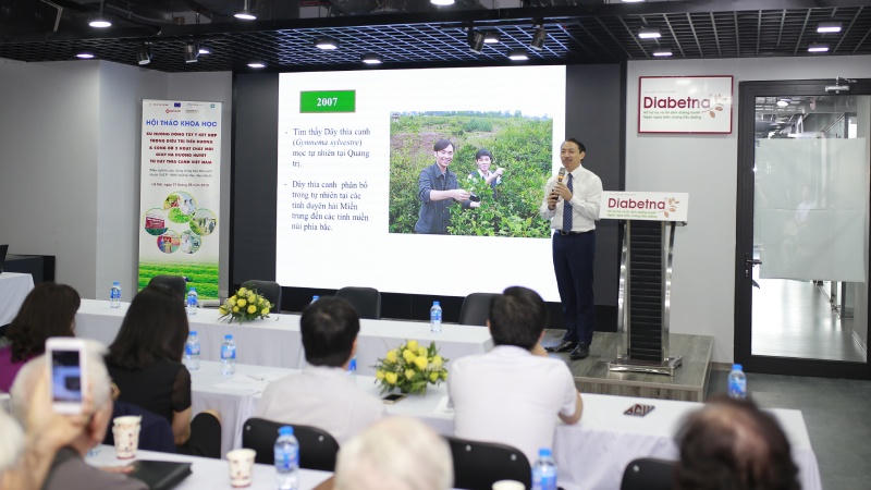 Ngày 07/08/2019 vừa qua, TS. Hoàng Minh Châu - Tổng Giám đốc Công ty Nam Dược - đại diện của nhóm nghiên cứu đã có bài trình bày về kết quả nghiên cứu trong buổi Hội thảo khoa học “Xu hướng Đông Tây y kết hợp trong điều trị tiểu đường & Công bố 2 hoạt chất mới giúp hạ đường huyết từ Dây thìa canh Việt Nam” do Tổng hội Y học tổ chức, dưới sự tài trợ của Liên minh Châu u và nhãn hàng Diabetna - sản phẩm chiết xuất 100% từ Dây thìa canh chuẩn hóa của Công ty Nam Dược.