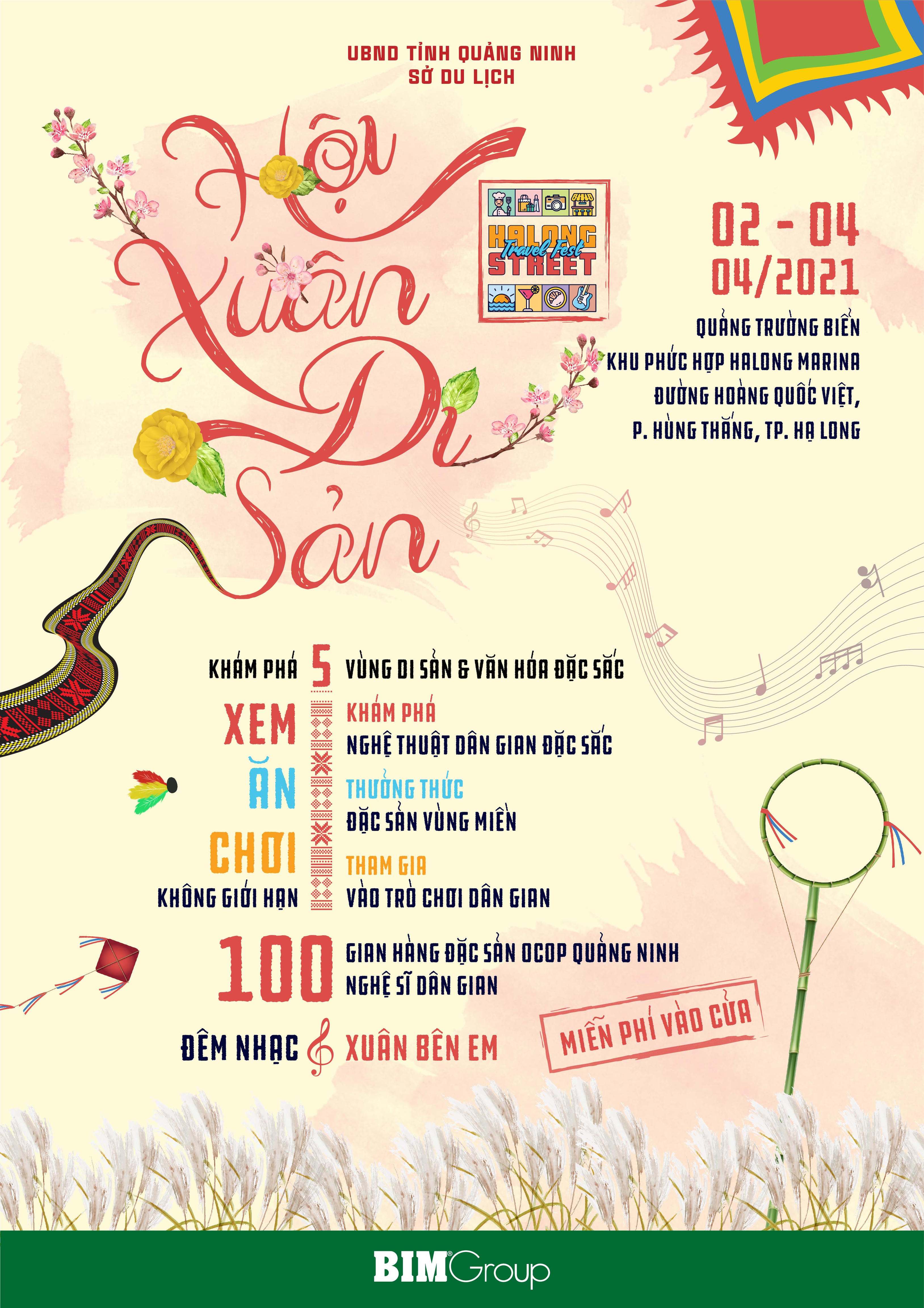 “Hội Xuân Di sản” miễn phí vào cửa từ ngày 2-4/4/2021 tại con đường lễ hội Halong Marina, bán đảo 2, Khu phức hợp du lịch Halong Marina, đường Hoàng Quốc Việt, p. Hùng Thắng, TP. Hạ Long.