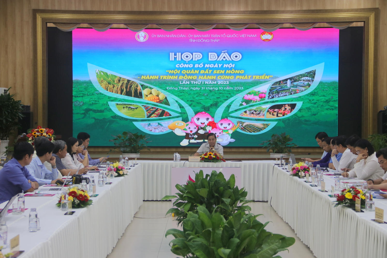 (PLVN) - Ngày 31/10, UBND tỉnh Đồng Tháp phối hợp UBMTTQVN tỉnh thông tin với báo giới về Ngày hội Hội quán Đất Sen hồng lần thứ I năm 2023 với chủ đề “Hội quán Đất Sen hồng – Hành trình đồng hành cùng phát triển”.