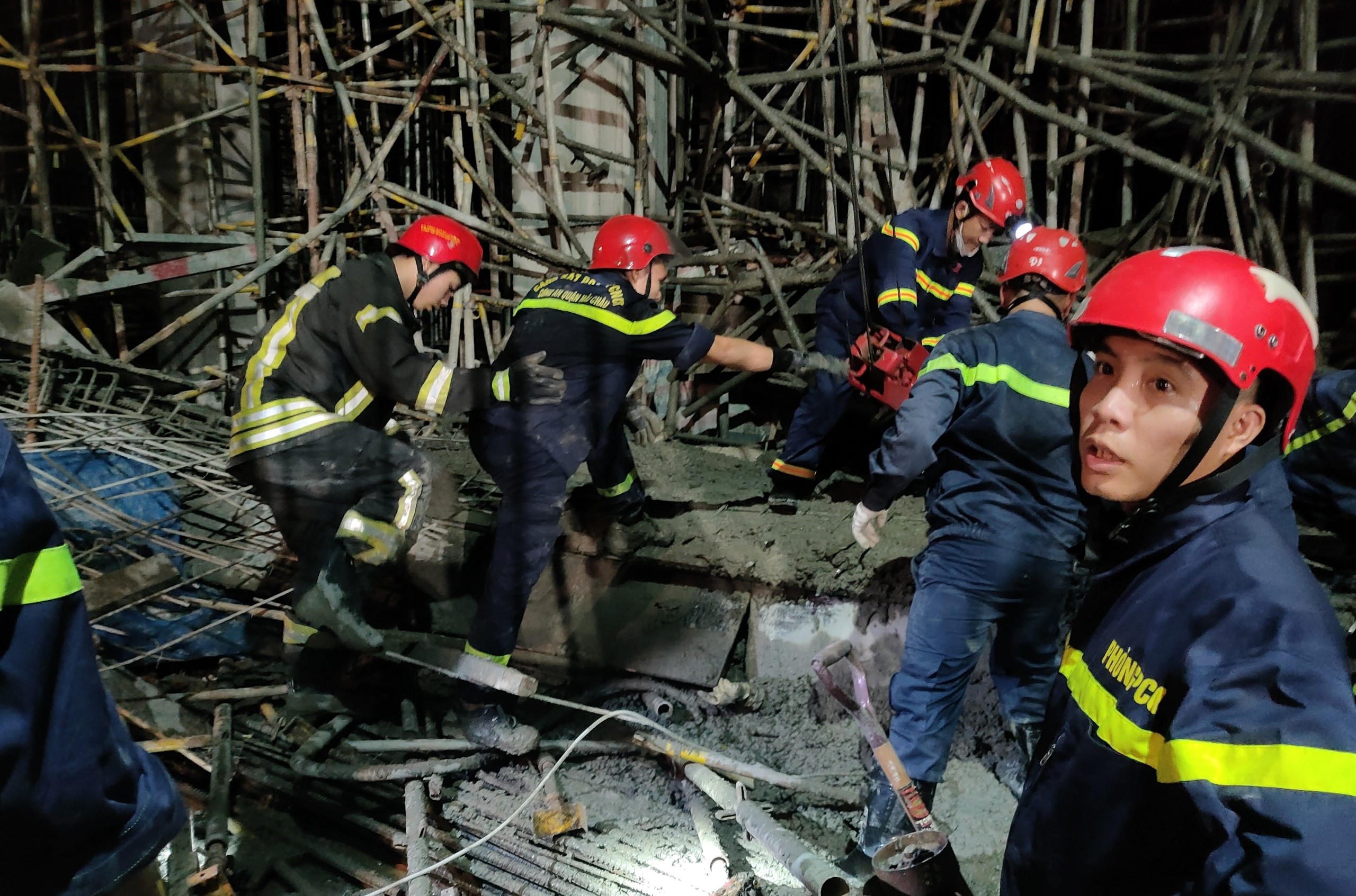 Nhận tin báo, Đội Cảnh sát PCCC và CNCH Công an quận Hải Châu phối hợp với Đội Công tác chữa cháy và cứu nạn, cứu hộ của Phòng Cảnh sát PCCC và CNCH Công an TP Đà Nẵng lập tức có mặt tại hiện trường. Các cán bộ chiến sỹ sử dụng máy cắt sắt, các thiết bị phá cắt thủy lực để cắt các cấu kiện bị vùi lấp và đào bới cứu nạn. Sau khoảng 3 giờ, lực lượng chức năng đã đưa được các nạn nhân ra ngoài.