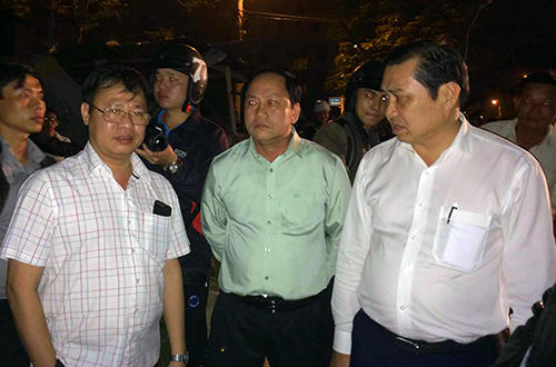 | Chủ tịch UBND TP Đà Nẵng Huỳnh Đức Thơ (bìa phải) đến hiện trường chỉ đạo việc khắc phục sự cố. Ảnh: N.Đ. |