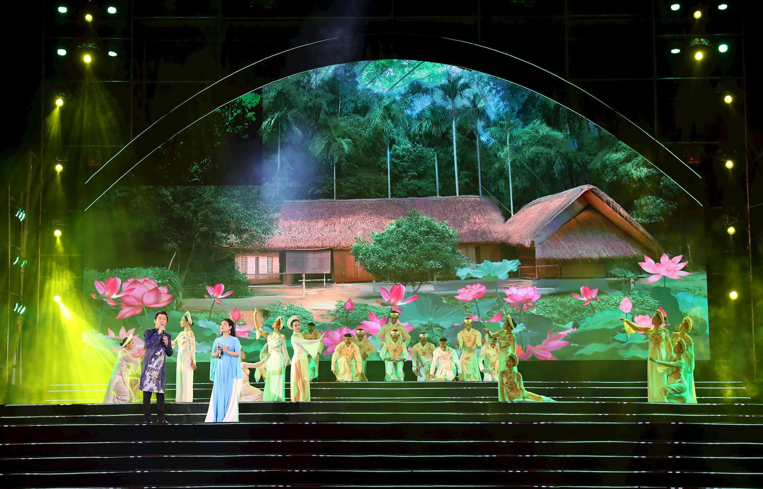 Chương trình nghệ thuật "Từ Làng Sen đến Thành phố Hồ Chí Minh" tại Lễ hội Làng Sen năm 2024. Ảnh: Minh Quân |