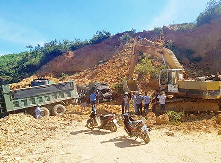Sập mỏ, tài xế cùng xe tải bị vùi trong đất