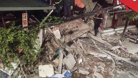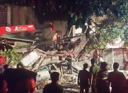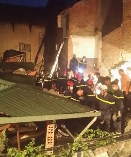 Căn nhà trên rộng gần 50 m2 được dùng làm cửa hàng ăn uống, nhiều nhân viên phục vụ ngủ lại cửa hàng qua đêm. Vào thời điểm bị sập, trong nhà có 11 người, phần lớn là nhân viên.