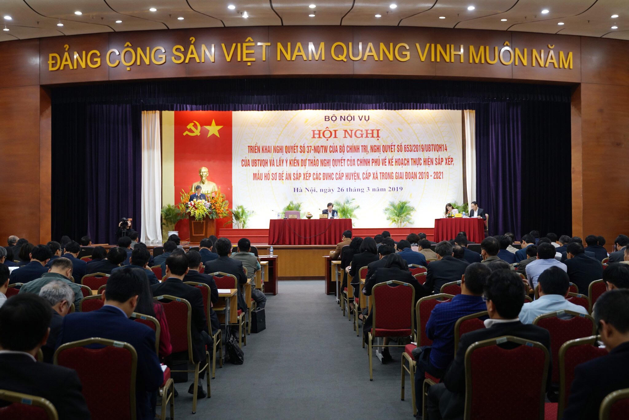 Kết luận hội nghị, Bộ trưởng Bộ Nội vụ Lê Vĩnh Tân ghi nhận và đánh giá cao các ý kiến từ các địa phương. Để triển khai có hiệu quả Nghị quyết 37 của Bộ Chính trị và Nghị quyết số 653 của Ủy ban Thường vụ Quốc hội, Bộ trưởng Tân đề nghị cần tăng cường công tác tuyên truyền để tạo sự ủng hộ của nhân dân và sự đồng thuận của cán bộ, công chức.