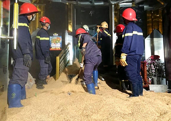 Sau khi giải phóng lớp trấu dày, khu vực bị sập lộ ra. Cảnh sát dùng búa phá phần còn lại của bức tường bêtông. Đến hơn 21h, người bị nạn đã được đưa ra ngoài nhưng đã tử vong.