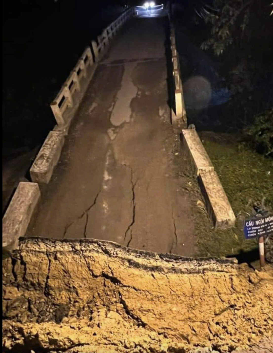 Trước đó, các lực lượng chức năng đã căng dây cảnh báo, cấm người và phương tiện lưu thông trên cầu. Thời điểm cầu sập không xảy ra thiệt hại về người và phương tiện.