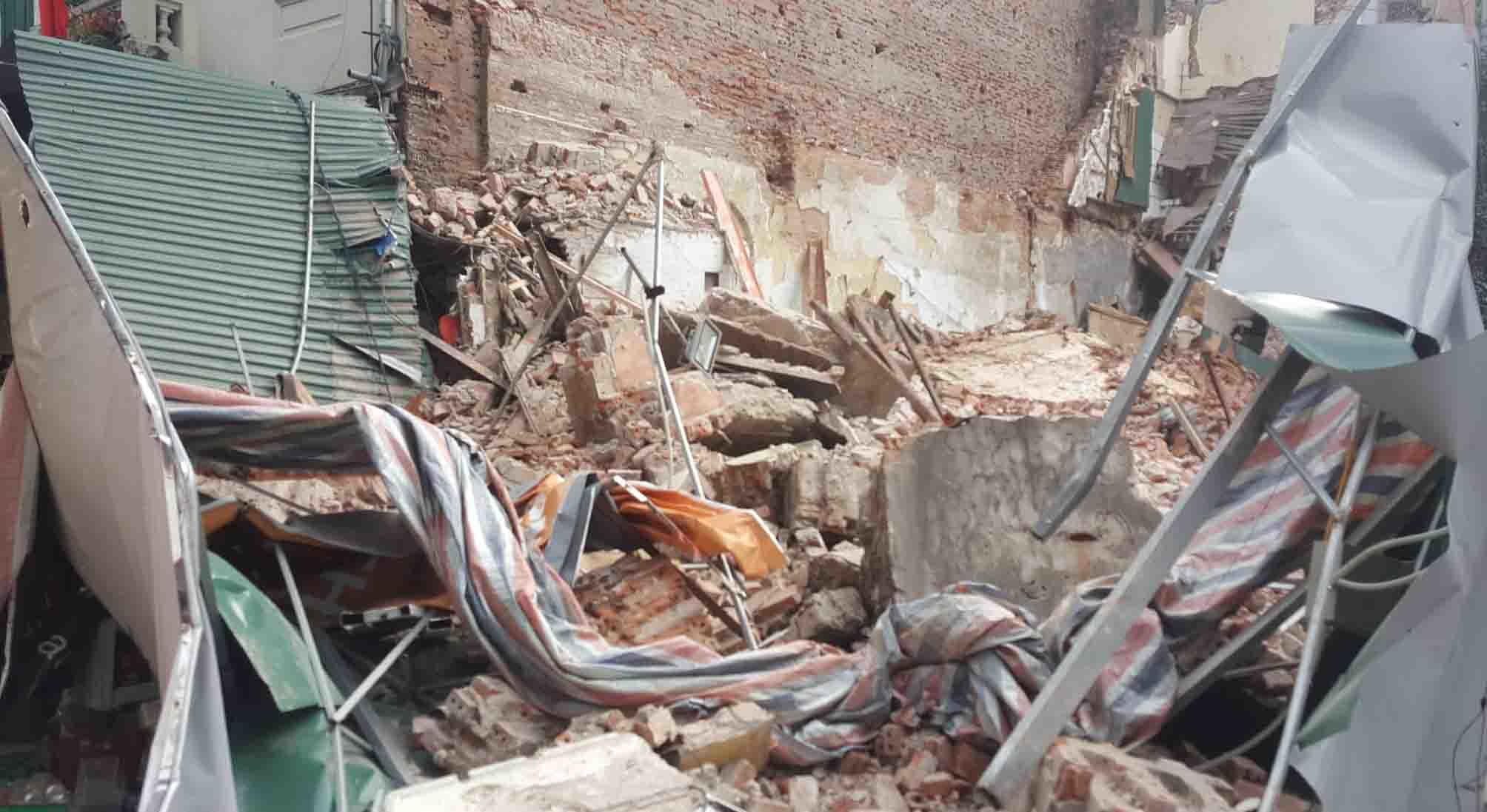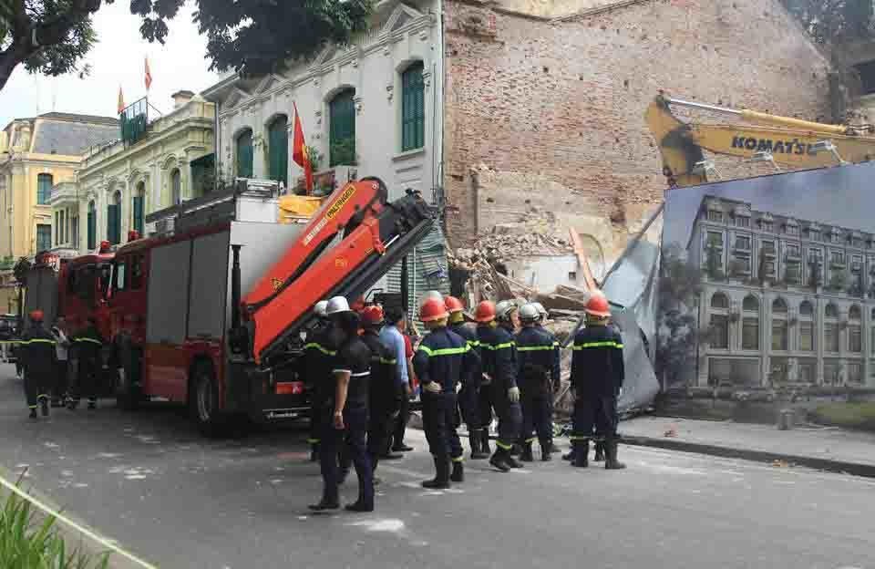 Sập tường công trình khách sạn trên phố Lê Thái Tổ