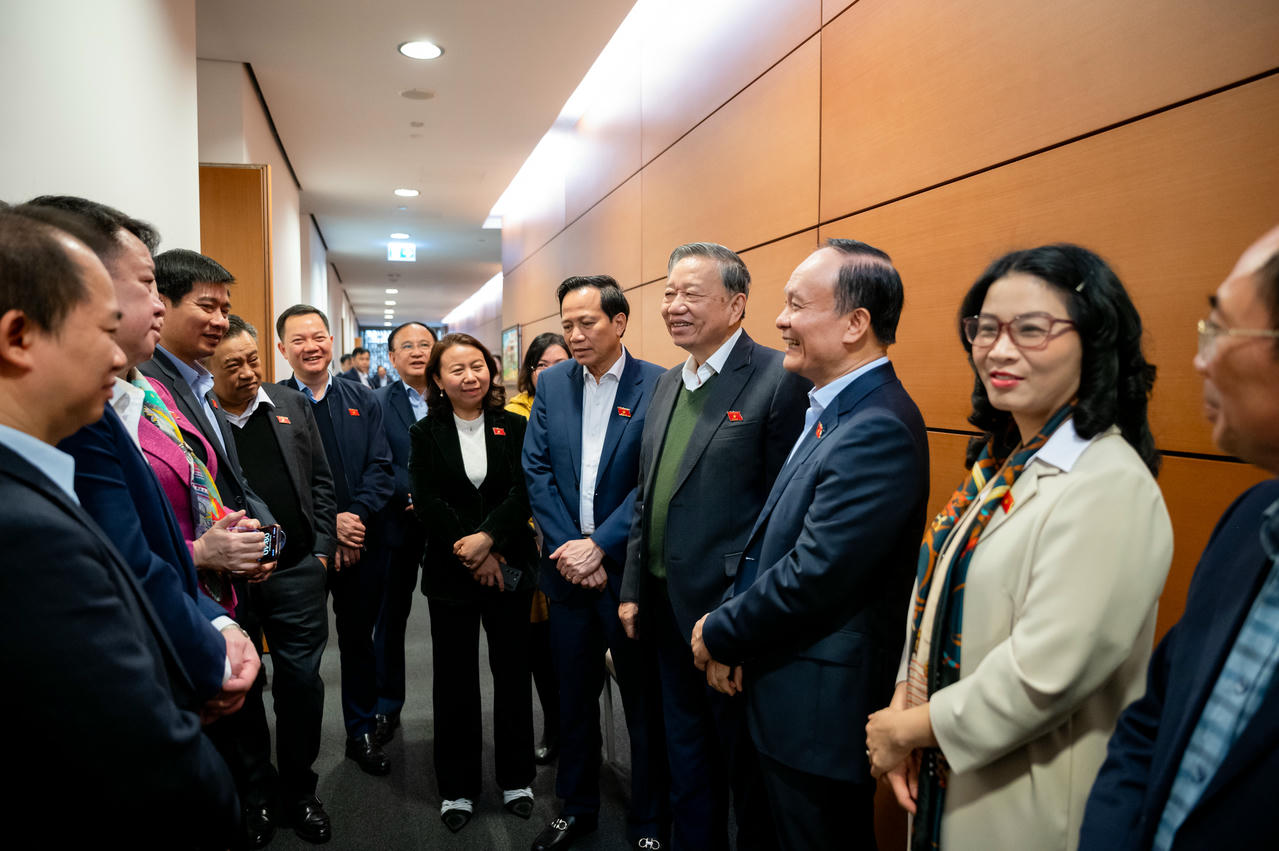 Tổng Bí thư Tô Lâm trao đổi với các đại biểu Quốc hội. (Ảnh: Cổng TTĐT Quốc hội) |