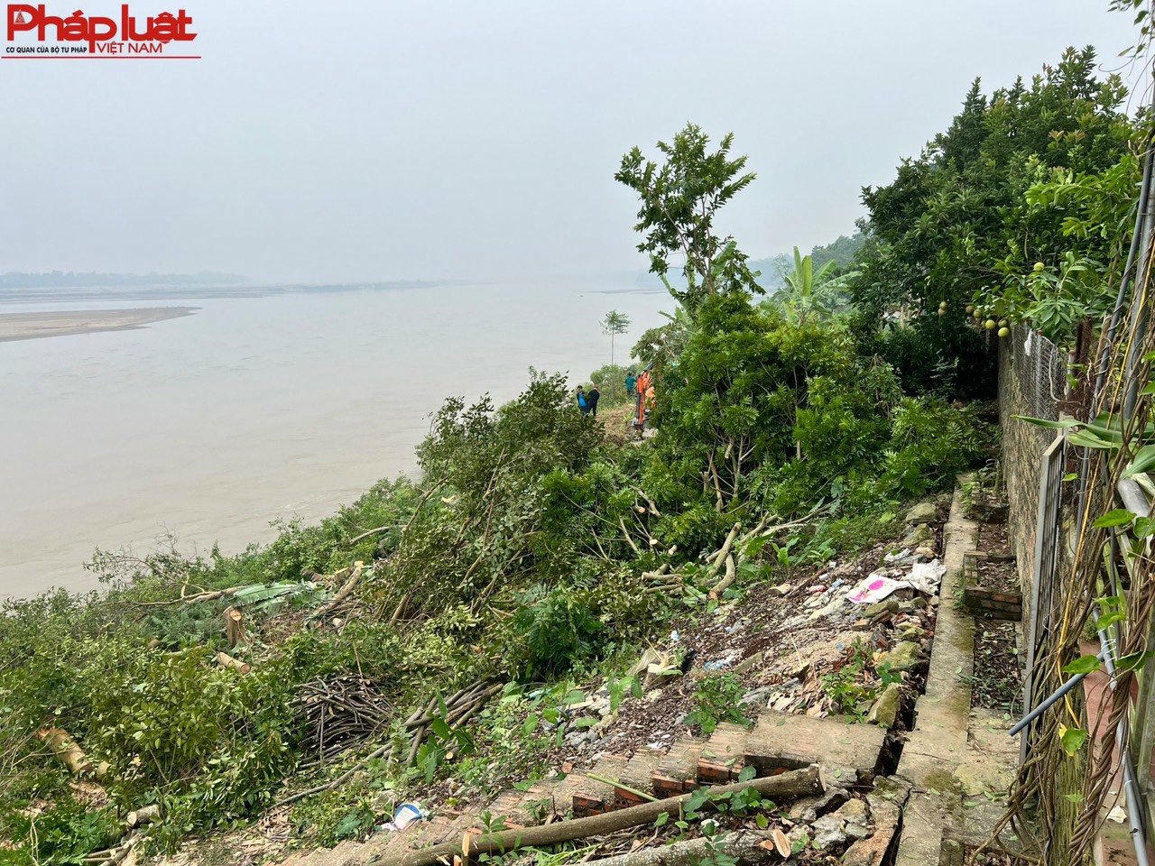 | Người dân chặt bớt cây xung quanh, tránh sạt lở nghiêm trọng hơn (Ảnh: Ngọc Phúc) |
