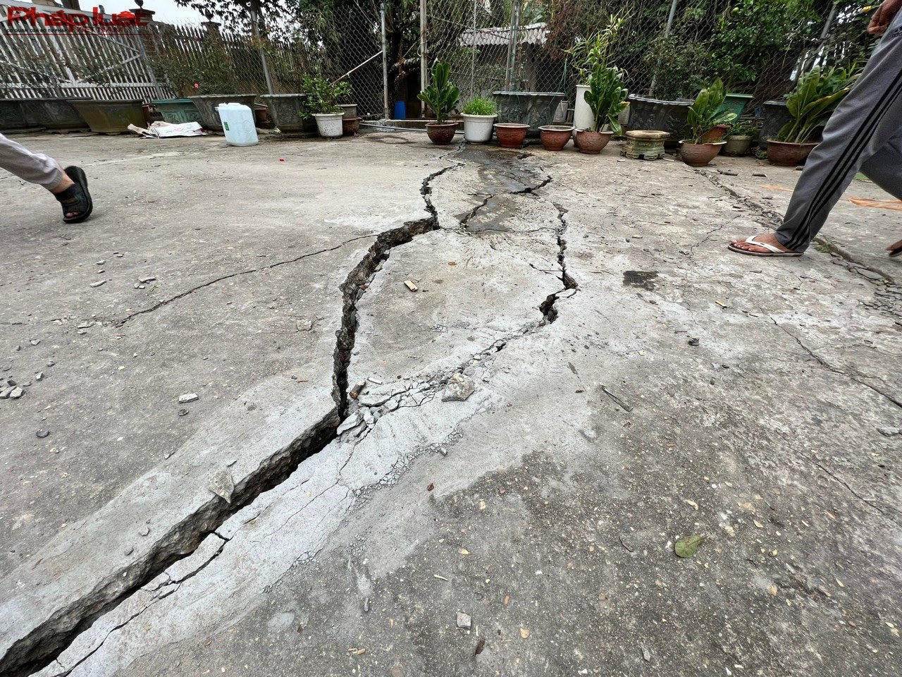 | Sân của người dân bị nứt thành mảng lớn, gây ảnh hưởng đến sinh hoạt (Ảnh: Ngọc Phúc) |