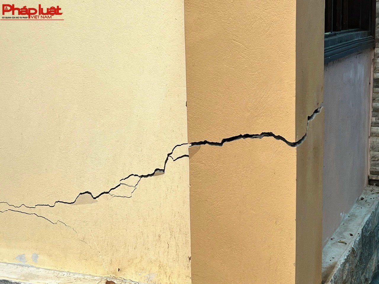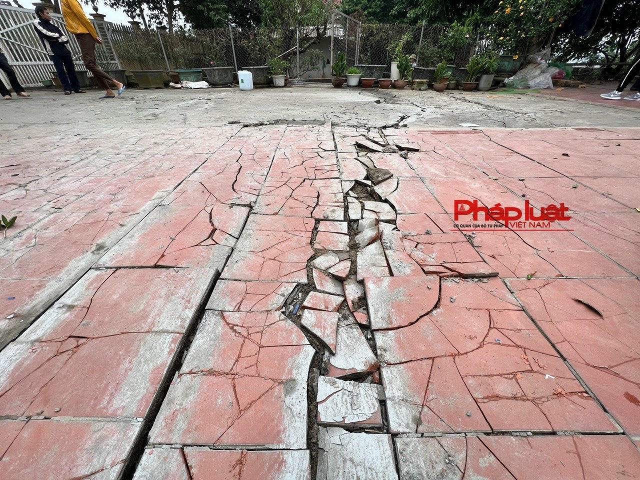 Chị Huyền, con dâu của ông Hà cho biết, vết rạn nứt xuất hiện ở sân nhiều ngày nay, gia đình cũng đã báo cáo các cơ quan chức năng. Rạng sáng nay, các vết nứt, lún ngày càng rộng ra và kéo dài, nhà cũng bị xé, nứt ngang.