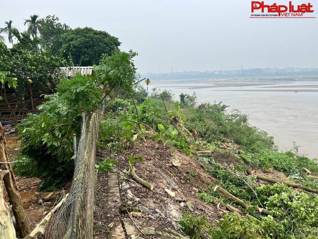 Đặc biệt, đoạn km79+350 – km79+500 sạt lở dài 150m làm sụt lún đất, ảnh hưởng tới 7 hộ dân. Có vết nứt dài cách chân đê 10m.